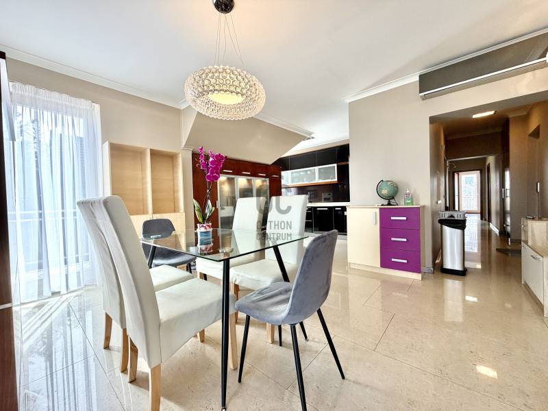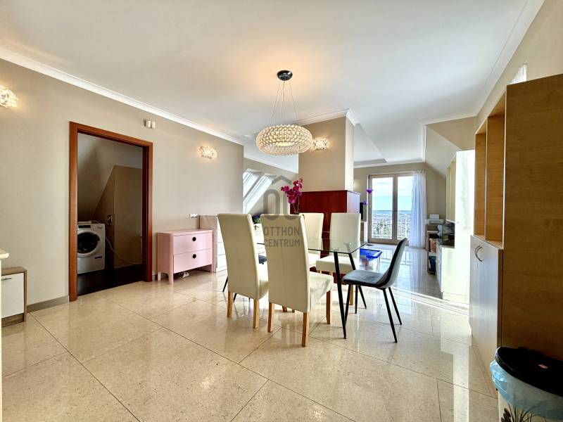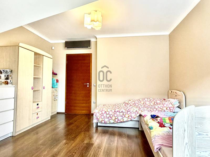 Budapest III. kerületének egyik legkeresettebb részén, Aranyhegyen kínálunk bérbevételre egy kivételes adottságú, 130 m²-es prémium ingatlant. Ha Ön olyan otthont vagy irodát keres, ahol a csend, a tiszta levegő és a lenyűgöző kilátás a mindennapok része, ez a második emeleti, legfelső szinti lakás tökéletes választás lesz.Egy lakás, ahol a lift az Ön nappalijában áll megAz ingatlan exkluzivitását már az érkezés pillanatában érezheti: a társasház liftje közvetlenül a lakásba repíti Önt. Mivel a legfelső szinten ez az egyetlen ingatlan található, a privát szféra és a nyugalom garantált. A lakást körbeölelik az ablakok és az 5 különálló erkély, így a nap minden szakában természetes fény árasztja el a tereket, miközben minden irányból élvezheti a környék megismételhetetlen panorámáját.Tér és stílus: a belső kialakításA lakás szíve egy közel 60 m²-es, amerikai konyhás nappali, amely tágas és elegáns helyszínt biztosít a családi élethez vagy akár reprezentatív irodai tevékenységhez. A konyha modern, teljesen gépesített, és egy hatalmas dupla hűtővel felszerelt a maximális kényelem érdekében.A kényelmes pihenést három különálló hálószoba biztosítja. A lakásban két igényesen kialakított fürdőszoba található: az egyik modern zuhanyzóval, a másik pedig egy kényeztető jakuzzi káddal felszerelt. Az ingatlan minimális, de magas minőségű bútorzattal kiadó, így könnyen saját ízlésére formálhatja.Modern technológia a maximális komfortértAz otthon hőmérsékletéről a legkorszerűbb megoldások gondoskodnak:Fűtés: Gazdaságos gázcirkó rendszer biztosítja a kellemes padlófűtést.Hűtés-fűtés: Minden helyiség egyedi hűtő-fűtő klímaberendezéssel felszerelt, így minden szobában személyre szabható a klíma.Környezet és parkolásAranyhegy ezen része híres a kiváló levegőjéről és a csendes, családias hangulatáról. Az autóval érkezőknek jó hír, hogy az utcán a parkolás ingyenes, és bőségesen áll rendelkezésre férőhely, ami ügyfelek vagy vendégek fogadása esetén is nagy előny.Bérleti feltételekAz ingatlan hosszú távra kiadó, és kiválóan alkalmas akár igényes családok, akár cégek számára irodaként.Feltételek: 2 havi kaució, 1 havi bérleti díj és közjegyzői okirat szükséges.Fontos: A lakás tisztaságának és állapotának megőrzése érdekében a dohányzás és a kisállat tartása nem megengedett.Amennyiben szeretné megtekinteni ezt a nem mindennapi, napfényben úszó panorámás ingatlant, várom megtisztelő hívását! |