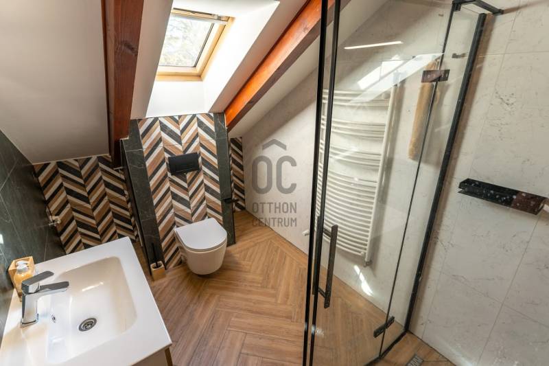 Fedezd fel álmaid otthonát Budapest XIV. kerületének csendes, de mégis pezsgő részén Zuglóban!Ez a felújított, kiváló állapotú, sorház jellegű, két szintes családi ház nem csupán egy ingatlan, hanem egy életstílus, amely ideális azok részére, akik értékelik a kényelmet és a természet közelségét.Nappali+ 5 tágas hálószobával rendelkezik, így bőséges teret biztosít a család számára, vagy akár baráti összejövetelekhez is. Két fürdőszobája garantálja, hogy reggelente senkinek sem kell várakoznia és emellett még vendég mosdó is megtalálható.A házhoz tartozik egy 403 négyzetméteres telek, amely rendezett kerttel rendelkezik. A füvesített kertben kiépített öntözőrendszer, 3x5 méteres hőszivattyúval fűthető medence, fedett sütögető rész és egy kis faház tárolónak is megtalálható.A 35 nm-es terasz tökéletes helyszín családi grillezésekhez vagy csak a napozáshoz.A prémium kivitelezés és a modern dizájn megjelenik a ház minden részletében. A kandallós nappali a téli estéken biztosítja a meghitt hangulatot. Az ingatlan fűtése gázkazán (viessmann) történik, radiátoros hőleadókkal, valamint padlófűtés is ki lett építve.Hűtése klímával, így a legforróbb nyári napokon is kellemes hőmérsékletet biztosít.A riasztó és kamera rendszer és a biztonságos környék nyugalmat ad a mindennapokhoz.Két autó számára udvari beálló áll rendelkezésre elektromos kapuval, biciklitárolóval.Fenntartása nagyon kedvező, köszönhető ez az 50 cm-es téglafalazatnak és a modern nyílászáróknak is.Az ingatlan tehermentes, így gyorsan birtokba vehető kifizetést követően.A környék kiemelkedő közlekedési lehetőségekkel rendelkezik: a kitűnő közlekedésnek köszönhetően gyorsan elérheted a belvárost. A csendes utcák és a barátságos szomszédság ideális környezetet biztosítanak az ideköltözők számára, akik szeretnék élvezni a városi élet előnyeit, miközben a természet lágy ölén pihenhetnek. Ne habozz, ha egy exkluzív, modern és családbarát otthont keresel, ami minden igényt kielégít!Várom megkeresésedet hétköznap és hétvégén is!Ez az ingatlan a \"Felező csomag\" megbízási portfólióhoz tartozik. Részletek az Otthon Centrum weboldalán. |