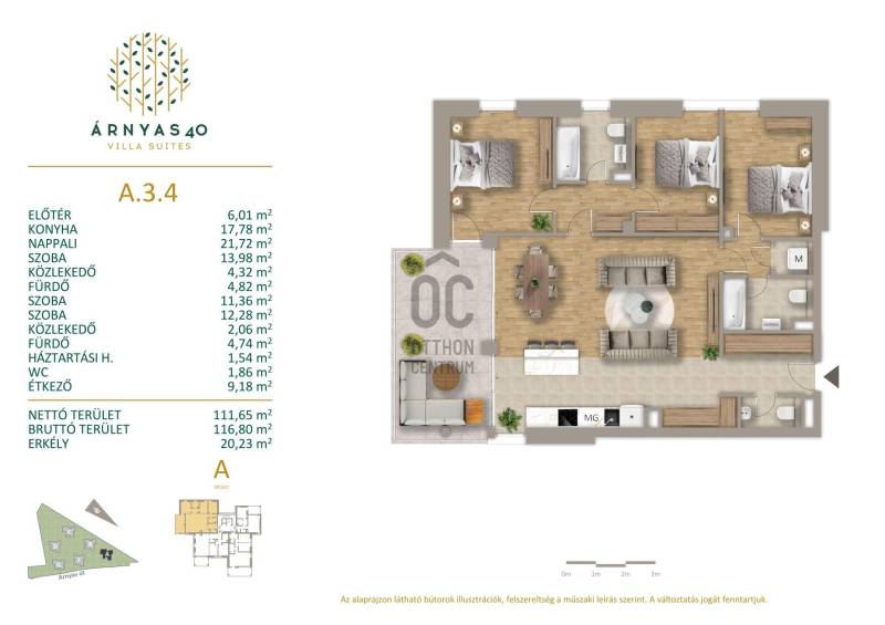 A lakópark egyik legjobb lakása lehet most az Öné. Költözzön exkluzív zöld környezetbe még idén. Üdv itthon!LOKÁCIÓAz Árnyas út a XII. kerület azon részén fut, ahol a budai hegyvidék topográfiája és a városi infrastruktúra ritkán tapasztalható módon erősíti egymást. A Budakeszi út közvetlen közelsége gyors, jól tervezhető kapcsolatot biztosít a város felé, miközben a lakókörnyezet már védett, zöldbe ágyazott és mentes az átmenő forgalomtól.Autóval a Széll Kálmán tér jellemzően 10–15 perc alatt elérhető, több közvetlen buszjárat pedig megbízható összeköttetést ad a belsőbb városrészekkel és a hegyvidéki csomópontokkal. Ez a fekvés különösen kedvező azok számára, akik napi szinten mozognak üzleti, intézményi vagy nemzetközi környezetben, és fontos számukra az időgazdálkodás.Kiemelkedő a környék ellátottsága. A közelben nemzetközi és magas színvonalú oktatási intézmények, sport- és rekreációs létesítmények, egészségügyi szolgáltatók, valamint jól válogatott bevásárlási és gasztronómiai pontok érhetők el. A Zugliget és a budai erdők közelsége nem alkalmi programként jelenik meg, hanem a mindennapi élet természetes háttereként: séták, futás és szabadtéri időtöltés formájában.A környezet egyik legfontosabb jellemzője a stabilitás. A beépítés léptéke kontrollált, az utcakép rendezett, a lakosság összetétele hosszú ideje kiegyensúlyozott. Nem egy gyorsan változó, felkapott városrészről van szó, hanem egy olyan hegyvidéki címről, amely évtizedek óta ugyanazt a minőséget képviseli – és éppen ettől értelmezhető hosszú távon is.Összességében az Árnyas út lokációja azok számára ideális, akik nem egyetlen szempont alapján döntenek, hanem az egész képet nézik: megközelíthetőség, környezet, szolgáltatások és időtálló érték együtt.PROJEKT - Árnyas 40 Villa SuitesAz Árnyas út 40 fejlesztése hat darab, földszint + négy emeletes villaépületből áll, amelyek egy közel két hektáros, parkosított területen szellősen elhelyezve alkotnak egységet. A beépítés tudatosan nem tömbszerű: az épületek közötti távolság, a tájolás és a belső zöldfelületek kialakítása mind azt szolgálja, hogy a lakások ne egymásra, hanem térre, fényre és növényzetre nyíljanak.Összesen 102 lakás kerül kialakításra, 52 és 132 m² közötti alapterületekkel, 2–4 szobás elrendezésekben. A lakások mindegyike kapcsolódik saját kültéri térhez – teraszhoz, erkélyhez vagy kertkapcsolathoz –, amelyek nem kiegészítő elemként, hanem a belső terek természetes folytatásaként működnek. A nagy üvegfelületek és az átgondolt benapozás a hegyvidéki fekvést tényleges térélménnyé alakítják.A műszaki tartalom a projekt egyik legerősebb pillére. A lakások mennyezeti hűtés–fűtés rendszerrel készülnek, amely egyenletes hőérzetet biztosít huzathatás nélkül, egész évben. Az energiahatékony működést korszerű gépészet támogatja, a hőleadás és -elvonás csendes, rejtett módon történik, a belső terek esztétikai tisztaságát nem bontva meg.A parkolás két szintes, felszín alatti teremgarázsban megoldott, így a felszíni területek zöldfelületként és gyalogos térként maradnak meg. A közlekedők, bejáratok és közös terek kialakítása világos, átlátható, a mindennapi használatra optimalizált, nem reprezentációs, hanem funkcionális szemlélettel.Összességében az Árnyas út 40 olyan fejlesztés, amely számaiban és műszaki megoldásaiban is alátámasztja a pozícióját. A projektet a Biggeorge Property jegyzi, a tőle elvárt módon: visszafogott építészeti megjelenéssel, erős műszaki tartalommal és olyan struktúrával, amely hosszú távon is értelmezhető – saját használatra és befektetési szempontból egyaránt.LAKÁSA lakás térszervezése nyugodt és egyértelmű. Belépve azonnal érzékelhető a világos struktúra: a közösségi terek nyitottak, a privát helyiségek védetten, hátrébb helyezkednek el. Nincs túltervezés, nincs felesleges gesztus – minden arányos és könnyen használható. A nappali, a konyha és az étkező egyetlen, jól tagolt térben kapcsolódik össze. A konyha nem válik uralkodóvá, az étkező természetes találkozási pont, a nappali pedig inkább a pihenés és az elcsendesedés tere. A nagy üvegfelületek nem csak fényt hoznak be, hanem ritmust is adnak a napnak, a terasz pedig valódi folytatása a belső térnek.A hálószobák elhelyezése kiegyensúlyozott. Egymástól kellő távolságban vannak ahhoz, hogy minden helyiségnek megmaradjon a saját intimitása. A fürdőszobák használata egyszerre kényelmes és természetes, a külön mosdó a vendégfogadást diszkrétté teszi. A kiszolgáló terek csendben végzik a dolgukat – jelen vannak, de nem tolakodnak. A mennyezeti hűtés–fűtés láthatatlan módon biztosítja az egyenletes hőérzetet. A terek tiszták maradnak, a falak és felületek szabadon értelmezhetők. Ez a műszaki háttér nem hangsúlyos, mégis meghatározó: csendet, kényelmet és hosszú távú stabilitást ad. Ez a lakás azokhoz szól, akik nem szeretnének dönteni a városi jelenlét és a visszavonulás között. Akik értékelik a rendezettséget, a minőségi anyaghasználatot és azt, ha egy otthon nem irányít, hanem együtt él velük. A hangsúly nem a látványon van, hanem azon az érzésen, hogy minden a helyén van.--------------------------------Díjmentes, bankfüggetlen hiteltanácsadással támogatjuk vevő ügyfeleinket a számukra legelőnyösebb finanszírozási döntések meghozatalában. Opcionálisan igénybe vehető kiegészítő szolgáltatásainkkal – mint ügyvédi közreműködés, energetikai tanúsítvány vagy villamos biztonsági felülvizsgálat – teljes körű szakmai 