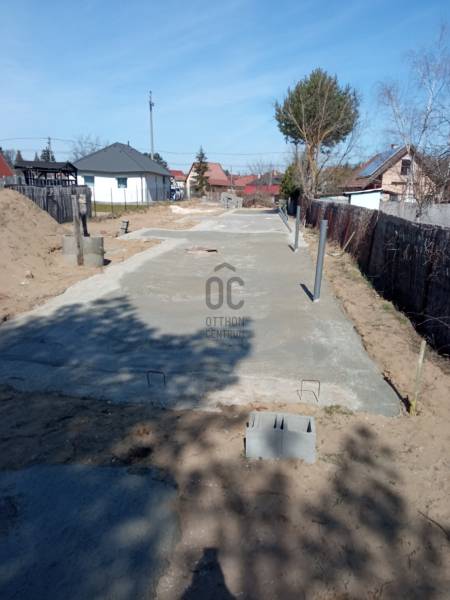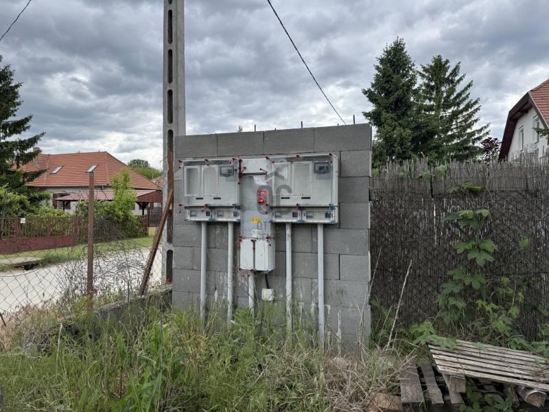 Veresegyházon Viczián városrészben kínálunk megvásárlásra egy kiváló lehetőséget kivitelezőknek vagy összeköltöző családoknak, akik egy megkezdett építkezés befejezésével két újépítésű ingatlant alakíthatnak ki saját részükre. A tervezett ikerházak egyenként 132 nm körüli méretűek. Alaprajz a képek között feltöltve.Telek mérete 940 nm, nagy előnye, hogy két utcára nyílik, így a földszintes ikerházak háttal érintkeznek egymással, mindkét tulajdonos külön utcáról járhat be a saját ingatlanába, nincs egymáson átjárás.A betonalap megvan, benne a csatorna közmű, telken belül a villany bekötés ( 2 lakásra kialakítva), gáz szintén telken belül, víz az utcán a telek előtt, onnan beköthető.A tervezett ingatlanok paraméterei:-földszintes kialakítás-tágas nappali-konyha-étkező +3 hálószoba (12 nm felettiek), két fürdőszoba, kamra, háztartási helyiség, külön mellékhelyiség, nagy terasz, garázs, az egyik hálószobához privát fürdőszoba tartozik.Saját telek mérete 470 nm.Teljes tervdokumentáció a vételár része.A környék csendes, rendezett, családi házakkal beépített.Vonatállomás a közelben található. |