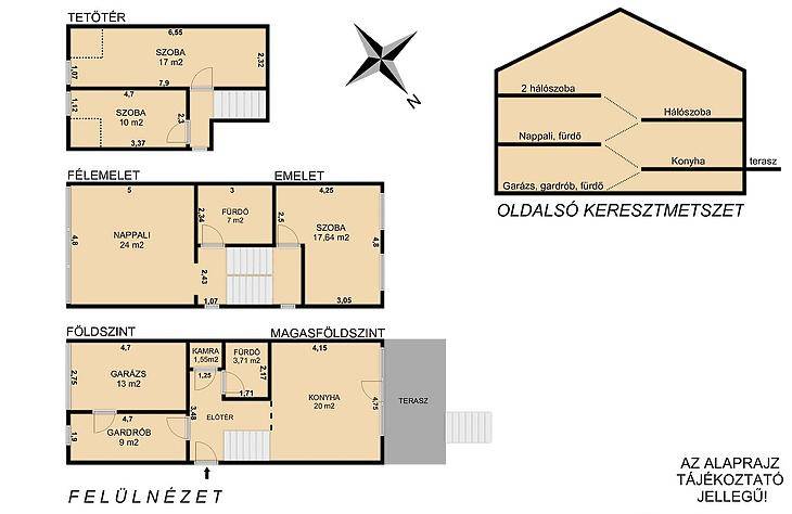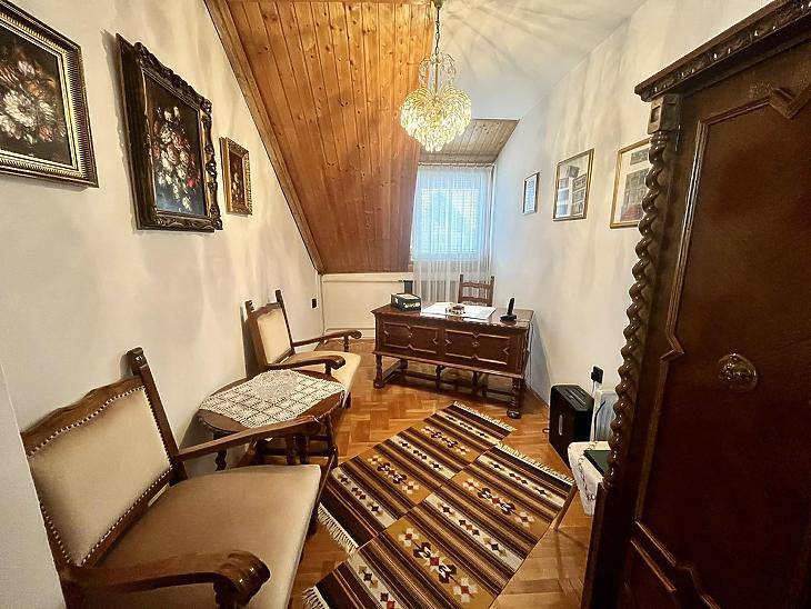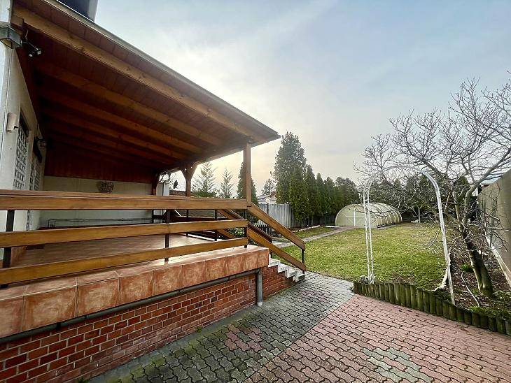 ELADÓ XV. KERÜLETBEN, RÁKOSPALOTÁN 146 M2-ES, 4 SZOBÁS, 2 FÜRDŐSZOBÁS ÖNÁLLÓ CSALÁDI HÁZ FEDETT TERASSZAL, FŰTHETŐ GARÁZZSAL, MEDENCÉVEL, GONDOTZOTT KERTTEL 364 M2 TELKEN.AZ ÉPÜLET JELLEMZŐI:A nettó 131 m2 tégla ház 1991-ben épült szinteltolással. Előkert és tágas, rendezett kert tartozik hozzá. A földszinten található egy ablakos gardrób, tárolóhelyiség, hidromasszázs zuhanykabinos fürdő és fűtött garázs elektromos kapuval. Fél emelettel feljebb nyílik a nagy, étkezős konyha, amelyből a 16 m2-es fedett teraszon át a gondozott hátsó kertbe léphetünk ki. A félemeleten tágas, napfényes nappali helyezkedik el látványkandallóval, faberakásos mennyezettel, valamint a Valentino burkolatú, kádas fürdőszoba. Szintén fél emelettel feljebb található egy kertre néző hálószoba, amit a következő szinten két külön bejáratú hálószoba követ. Igény esetén a padlástér tovább bővíthető. Az ingatlan minőségi anyagokból épült, időtálló, igényes kivitelezéssel. Műanyag hőszigetelt ablakokra cserélték a nyílászárókat, a lépcsőházban 4 ablak fa maradt. Pala fedi a tetőt. A kertben fúrt kútról működő automata öntözőrendszert építettek ki és egy 6X3 méteres, lefedhető medencét, amit hideg-meleg vízzel lehet feltölteni. Kandeláberes kerti világítás és a tuja- és rózsasorral szegélyezett pázsit emeli az udvar hangulatát. A garázs mellett 3 autó számára zárt parkolási lehetőség is biztosított a térkővel burkolt udvaron. Riasztórendszer és kamerás kaputelefon van beépítve. PARKOLÁS:Házkapcsolatos, fűthető garázs és még 3 autó számára biztosított kocsibeálló az udvarbanKÖZLEKEDÉS:Pár perc sétatávolságra közlekedik a 96, 130, 196, 196A, 296, 296A, 231, 231B buszIRÁNYÁR: 151 M FTFINANSZÍROZÁS:Az ingatlan banki finanszírozással is megvásárolható, melyben irodánk ingyenes tanácsadással áll rendelkezésükre!VEVŐINK RÉSZÉRE A KÖZVETÍTÉS DÍJTALAN !!A hirdetésben szereplő adatok tájékoztatás jellegűek! |