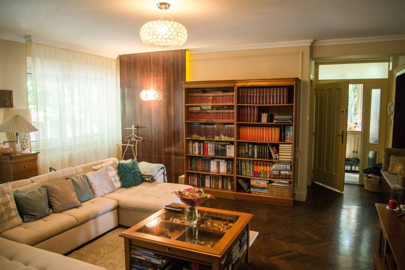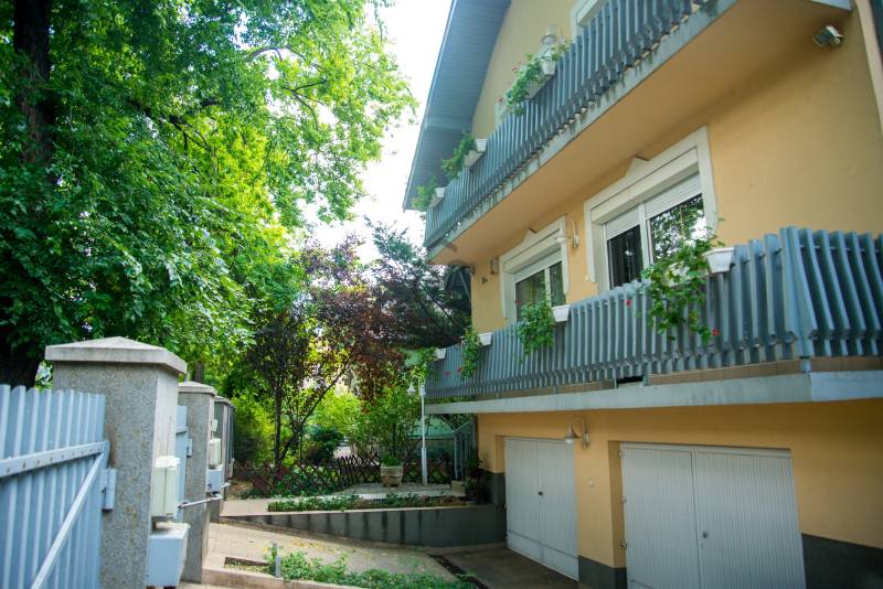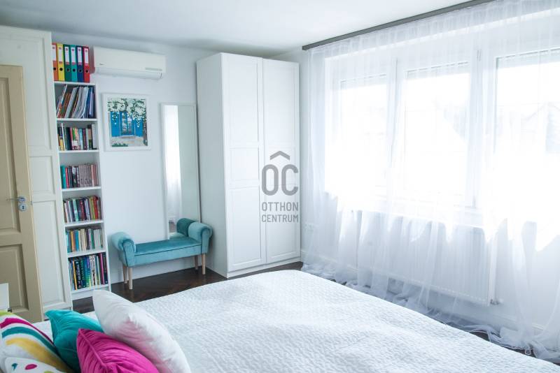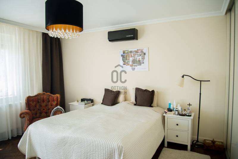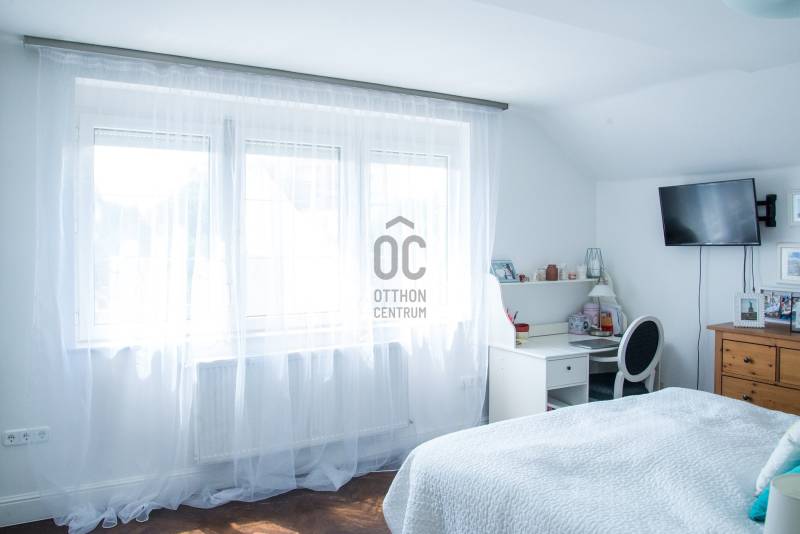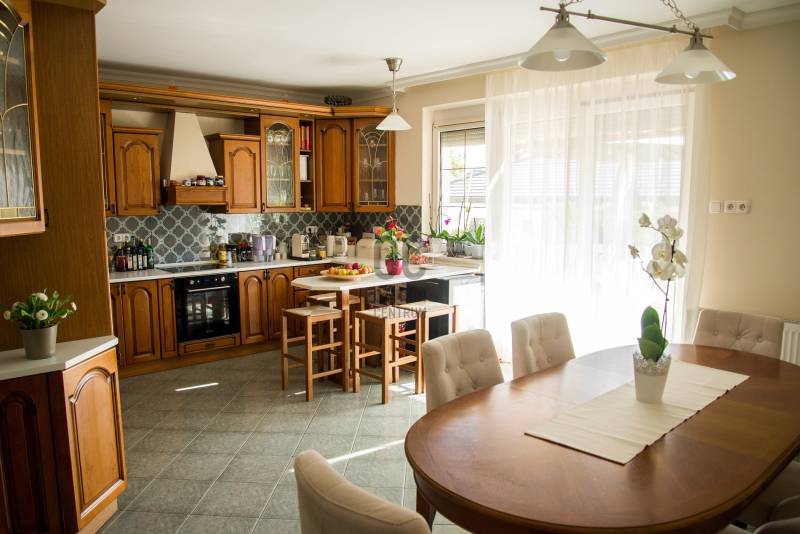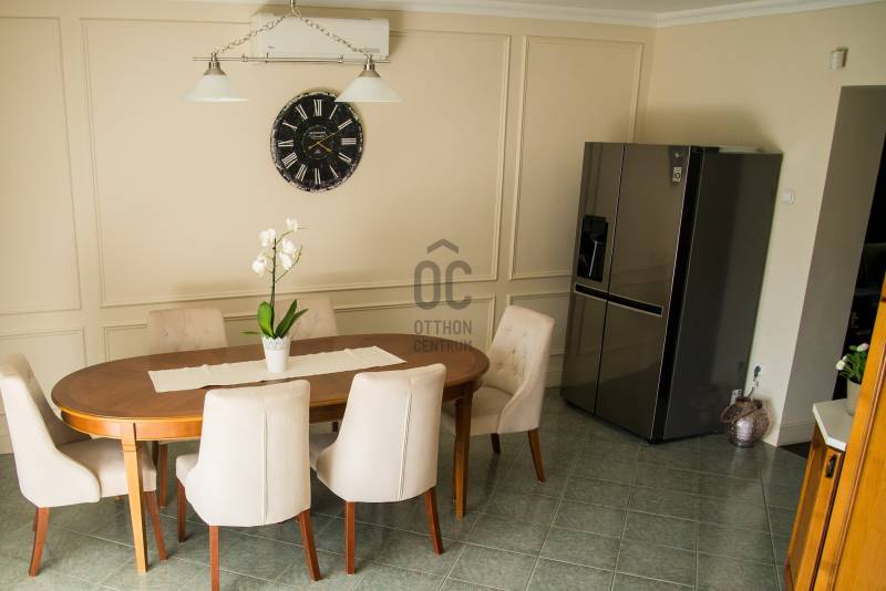Debrecenben, a klasszikus Nagyerdőn, a Nagyerdei körútból nyíló csendes kis utcában, 276 nm-es (+ 42 nm-es dupla garázs) alapterületű, nappali + nagy konyha-étkezős + 4 nagy hálós + 2 fürdő + wc-s + a szuterén szinten külön fürdő és wc-s, a nyolcvanas években, 470 nm-es telken épült kétszintes (+a szuterén szint) gáz-cirkó fűtéses önálló családi ház eladó.A ház 2020-ban teljeskörű belső felújításon esett át (villany és gáz vezetékek cseréje, kondenzációs kazán,burkolatok,stb) kivéve a konyhai burkolat és a konyhaszekrény melyek régebbiek.A ház tégla falazatán 10 cm szigetelés van, a tetőn Bramac cserép,műanyag nyílászárók redőnnyel részben rovarhálóval ellátva, van szobánként klíma, van riasztó és elektromos kapu, a szuterén szinten szauna hozzá tartozó zuhanyzóval és téglával kirakott borospince található valamint 42 nm-es 2 állásos garázs, a parkosított kertben szalonnasütő és kiépített öntözőrendszer, kerti csap. |