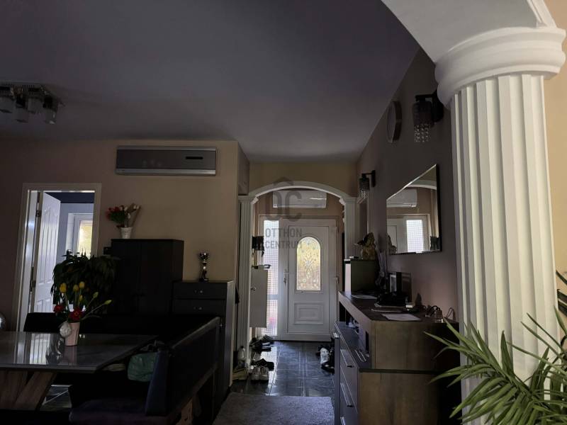 Kivételes lehetőség családoknak, befektetőknek vagy akár több generáció számára!Eladásra kínálok egy 170 nm-es, kétszintes, téglaépítésű sorházat a Kőbánya csendes, kertvárosias részén, a közkedvelt Városszéli telep területén. Az ingatlan 2002-ben épült, rendezett, barátságos környezetben, kulturált lakóközösséggel.A ház egész nap világos, kiváló állapotú, gondosan karbantartott. Az alsó szinten egy tágas, amerikai konyhás nappali található, mellette két kényelmes hálószoba, egy kádas fürdőszoba WC-vel, valamint egy külön mellékhelyiség. A felső szint jelenleg egy légtér, amely igény szerint szabadon alakítható, akár több szoba is kialakítható, vagy belső kétszintes elrendezésben tovább gondolható.A konyha prémium minőségű beépített bútorral felszerelt (beépített sütő, kerámia főzőlap, páraelszívó). A nappaliban, az előszobában és a szobákban egyedi beépített szekrények biztosítanak bőséges tárolóhelyet. A komfortérzetről 5 darab inverteres hűtő-fűtő klíma gondoskodik (2 db 2,5 kW-os és 3 db 3,5 kW-os).A műanyag nyílászárók kétrétegű, öt légkamrás hőszigetelt üvegezéssel készültek, redőnnyel és szúnyoghálóval felszereltek. A biztonsági bejárati ajtó szintén műanyag, többpontos zárral. A szobák padlószőnyeggel, a többi helyiség járólappal burkolt. A fűtést és a melegvíz-ellátást egy 24 kW-os Saunier Duval gázkazán biztosítja, padló- és radiátoros hőleadással.A sorházhoz 480 m²-es, teljesen leválasztott, kizárólagos használatú telekrész tartozik. A telken fedett kocsibeálló áll rendelkezésre két autó számára, az ingatlan előtt pedig további négy gépkocsi parkolása megoldható.A beépített konyhabútor és minden rögzített bútor a vételár részét képezi, a többi berendezés megegyezés tárgya.Közös költség nincs. Az ingatlan per- és tehermentes, jogilag rendezett, társasházalapító okirattal rendelkezik.Ha egy azonnal költözhető, világos, kiváló elosztású otthont keres biztonságos, nyugodt környezetben, érdemes személyesen is megtekinteni. Ez az ingatlan valóban sok lehetőséget rejt magában. |
