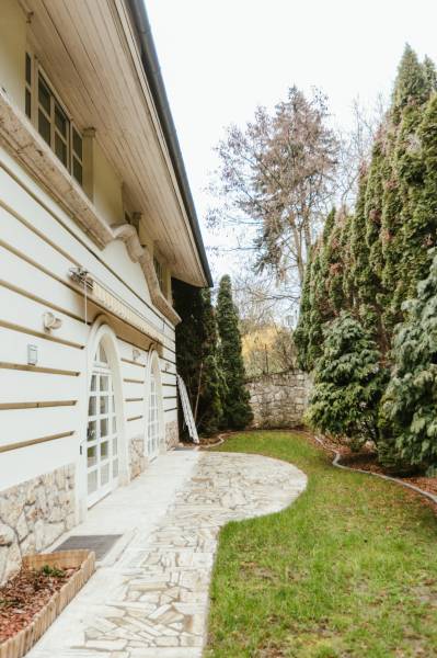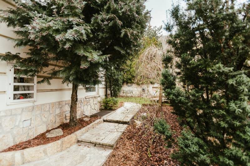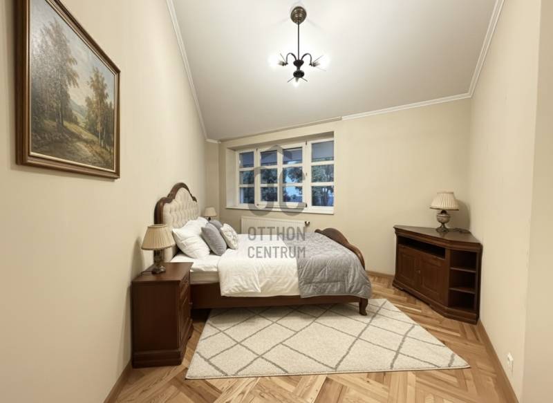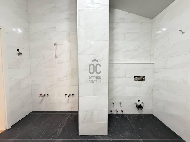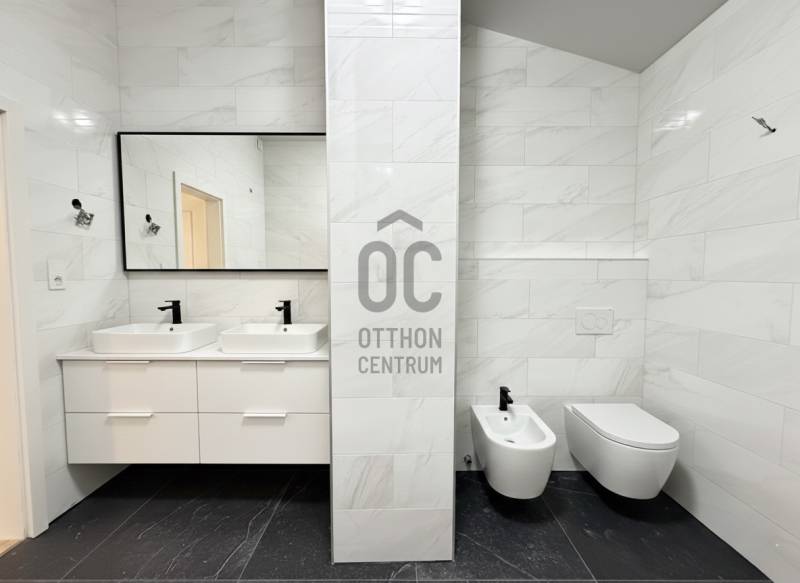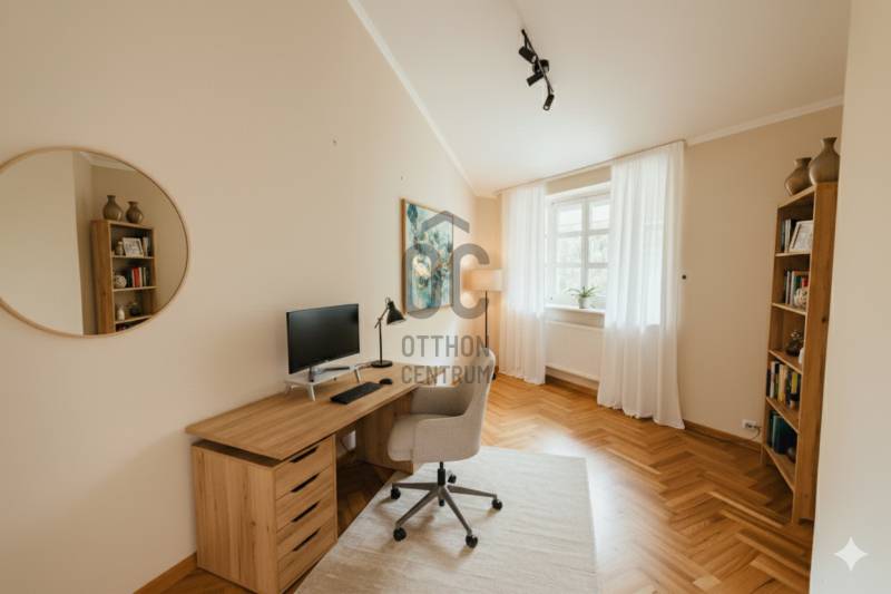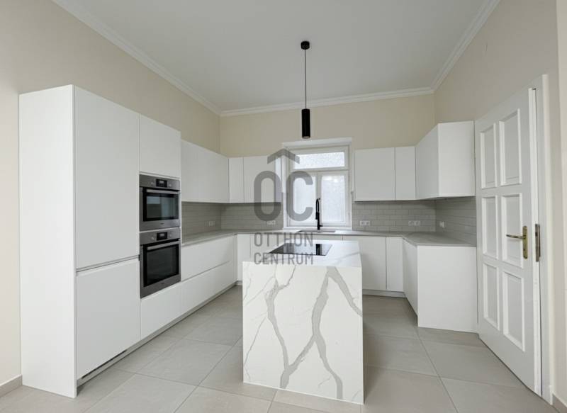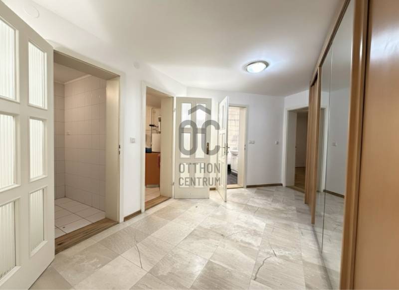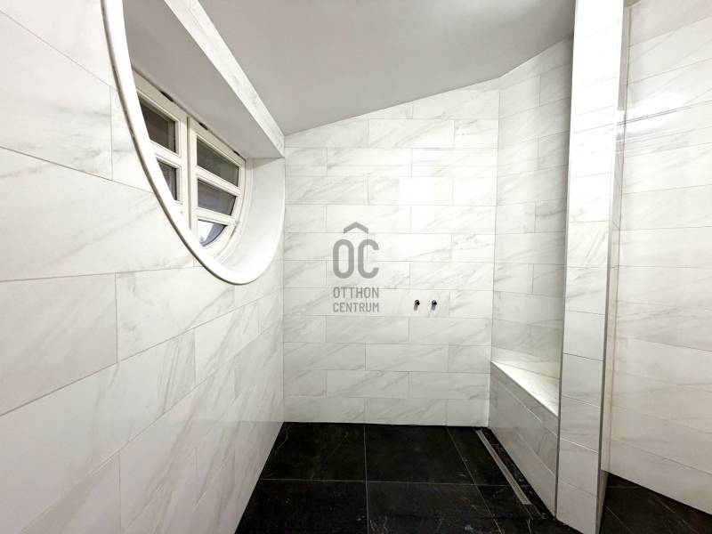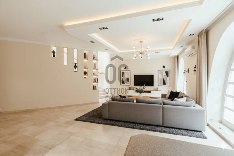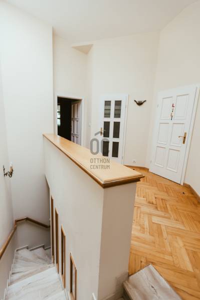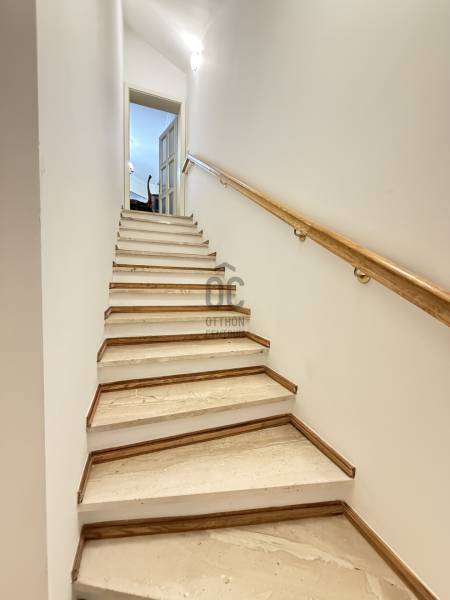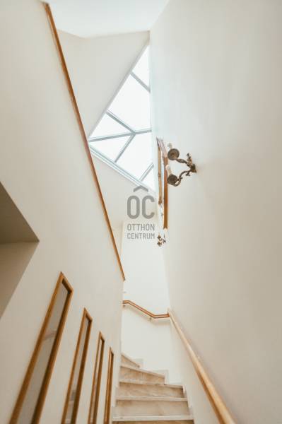 Eladó egy 262 m²-es, teraszos, kertkapcsolatos, dupla garázsos ikerházfél Budapest egyik legkedveltebb, zöldövezeti részén, Máriaremetén.Már az első pillanatban érezni, hogy ez az otthon más: A háromszög alakú alaprajz egyedi, modern térélményt kínál, amit a 3,2 méteres belmagasságú, 66 m²-es amerikai konyhás nappali tovább fokoz. A lenyűgöző térérzete a nagy üvegfelületekkel és a kertre nyíló terasszal a napfény és a természet harmóniáját teremti meg.A gondosan ápolt, intim kert öntözőrendszerrel és kerti sütővel ideális helyszíne a pihenésnek és a közös pillanatoknak.A márványlépcsőn felérve az emeleten három hálószoba, egy gardrób és egy felújított, berendezésre váró fürdőszoba kapott helyet, amelyet új tulajdonosa saját ízlésére formálhat.Az alsó szinten két természetes fénnyel megvilágított, parkettás helyiség, egy mosókonyha, kazánház, kamra és egy további fürdőszoba szolgálja a kényelmet.A 34 m²-es, kétállásos garázs a vételár részét képezi.A környék csendes, mégis kiváló közlekedésű: a buszmegálló néhány lépésre található, a Hűvösvölgyi végállomás percek alatt elérhető.A közelben bevásárlási lehetőségek, nemzetközi iskolák, óvodák, kirándulóhelyek, sportpálya és uszoda kínálnak magas életminőséget. A francia nemzetközi iskola gépkocsival kb. 3-5 perc alatt elérhető. A SEK Budapest International School kb. 6-8 perc alatt elérhető és a The British International School Budapest gépkocsival kb. 10-12 perc a menetidő.A ház azonnal költözhető, jelenleg bútorozatlan.A képeken látható berendezés egy része digitális enteriőrtervezés, mely az otthon lehetőségeit szemlélteti!Egy ház, amely nem követi a megszokott formákat – hanem megteremti a sajátját.Ha Ön egy tágas, világos, karakteres otthont keres Budapest egyik legjobb levegőjű környékén, ez az ingatlan tökéletes választás. |