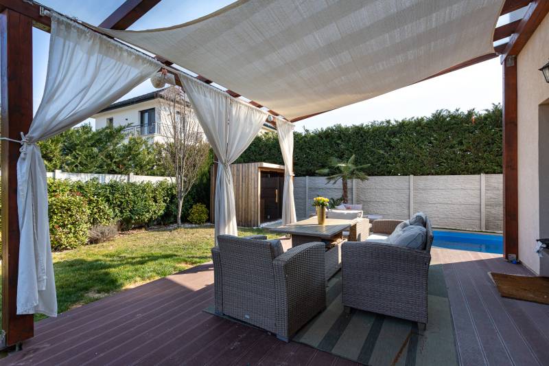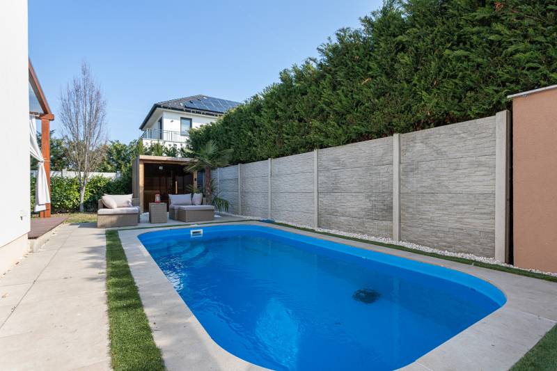 MEDENCÉS, SZAUNÁS ÚJSZERŰ IKERHÁZ ,MAGAS MŰSZAKI TARTALOMMAL, SOK EXTRÁVAL!Kizárólag nálunk XVIII. kerület új lakóparkjában almáskertben 2016-ban épült,142m2-es, nappali plusz 5 félszobás, kétszintes, ikerház 2 fürdőszobával,2 WC-vel, fedett terasszal (20m2-es),garázzsal (16m2-es), gépkocsibeállóval, 285m2-es önálló kertrésszel eladó.A telken a házak egymás mögött helyezkednek el, csak a garázsoknál érintkeznek, nincs közös fal.A ház könnyűszerkezetes,külső teherhordó falak fa vázoszlopok fa merevítéssel, közte 15cm kőzetgyapot szigeteléssel, külső dryvet szigetelés 10cm, könnyűszerkezetes födémmel, műanyag nyílászárókkal (kétrétegű,kívül barna ,belül fehér színben),natúr színű betoncseréppel.Extrák:-konyhabútor beépített gépekkel , alsó,felső fürdőben beépített szekrények- 8,5 kW-os napelem rendszer, szaldóval 2033-ig. Inverter 12 kW-os, tehát bővíthető a rendszer- teljes ház klimatizált, 2 db 3,5 kW Gree hűtő fűtő klíma, 1 db 2 kW hűtő fűtő klíma- villany: 3x32A, H tarifa: 1x32 A- LG hőszivattyú 12kW, 300 literes HMV tartály- padlófűtés (földszint és emelet is)- fatüzelésű kandalló, külső levegő bevezetéssel és hőtároló rendszerrel- elektromos kapu és elektromos garázs kapu- riasztó rendszer , szúnyogháló- automata öntözőrendszer- automata kert világítás - kombinált szauna: 4-5 fős, prémium faanyagokból épült, üvegpanorámás infra és finn szauna- medence: 6x3-as, 150cm mély, hőszivattyús fűtés (9kW), sóbontós (gondozásmentes) rendszer, ellenáramoltató rendszer úszóedzésekhez, medence világítás-kertben biztonsági kamera-fedett terasz pergolával (20m2-es)-vízóra: normál és locsoló óra, -rugalmas költözés ,jogilag rendezett , külön helyrajzi számon lévő ingatlanMagyarország piacvezető hitelközvetítője által egyedi kamatkedvezményekkel és bankfüggetlen, díjmentes hitelügyintézéssel is segítjük vásárlását. CSOK plusz hitel és piaci alapú hitel igénybe vehető az ingatlanra. Amennyiben minimum 25 millió Ft. összegű ingatlanfedezetes hitelt vesz igénybe általunk 500 Euro értékű Club Karos Spa**** wellness utalványt adunk ajándékba. (Az akció kizárólag a Money Network ügynökhálózatán keresztül beadott és folyósított jelzáloghitelekre érvényes.) Hívjon bizalommal! |