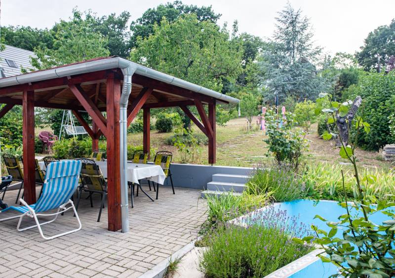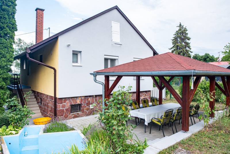BALATONSZEPEZD REJTETT KINCSE – KÉTSZINTES NYARALÓ HANGULATOS KERTTEL Balatonszepezd egyik csendes, rendezett utcájában, szép nyaralóépületek környezetében kínálunk megvételre egy jó állapotú, folyamatosan karbantartott, 1972-ben épült nyaralót, amely a Balaton-felvidék természetközeli környezetét és a Balaton közelségének élményét egyaránt megadja. A 785 m²-es belterületi telken elhelyezkedő, 126 m2-es, 4 + 2 szobás, dupla komfortos ingatlan két külön bejáratú szinttel rendelkezik, így ideális választás lehet akár családi nyaralónak, többgenerációs használatra, vagy vendégház kialakítására is.Az ingatlan elrendezése: Alsó szint: előtér, konyha, fürdőszoba, két lakószoba, 17 m2-es garázs Felső szint: tágas nappali konyhasarokkal és egy 16 m2-es erkélykapcsolattal, három lakószoba, fürdőszoba, külön WC Az épület a földszinten terméskőből, az emeleten B30-as téglából épült. Pala tetőfedésű. A ház a nyugati és északi oldalon 15 cm-es homlokzati szigeteléssel és a padláson födémszigeteléssel is rendelkezik, ami tovább növeli komfortját. A ház minden helyisége ablakos, ezáltal az optimális elrendezésű helyiségek világosak, derűsek. A földszinten az előtérben elhelyezett lemezkandalló gondoskodik a melegről. A felső szinten hűtő-fűtő klímaberendezés került telepítésre. Az épület infrapanelekkel egyszerűen fűthetővé, télen is használhatóvá tehető és akár állandó lakhatásra is alkalmas lehet. Az emeleten elektromos mozgatású, fémredőnyök lettek telepítve. Az ablakok részben műanyag gyártásúak. Az emeleti szintről az őszi és téli hónapokban részleges balatoni panoráma tárul elénk.A kert kellemes hátteret ad a pihenéshez és a nyári együttlétekhez. A pergola árnyékában családi ebédek, baráti beszélgetések és nyugodt esték válhatnak a mindennapok részévé. A parkosított kertben termő gyümölcsfák – sárgabarack, körte, dió, őszibarack, cseresznye és füge – valamint dísznövények teremtenek természetes, barátságos környezetet. A kikapcsolódást egy kis merülőmedence és egy napelemes kerti zuhanyzó is szolgálja.Az udvarra egy kézi működtetésű úszókapun keresztül lehet bejutni. A kiépített és távfelügyeletre bekötött riasztórendszer pedig a biztonságról gondoskodik.Közművek: víz, villany (a bojler számára éjszakai áram is) bevezetésre került, csatorna nincs a környéken. A szennyvíz elvezetése egy kétaknás, zárt szennyvízgyűjtőbe történik. Gáz a telken belül, de nincs bevezetve a házba. Elhelyezkedése: szepezdfürdői vasútállomás, buszmegálló 800 m, strand 1,5 km, élelmiszerbolt 1,3 km, a komolyabb infrastruktúrát Révfülöp és Zánka biztosítja. Ez az ingatlan ideális választás lehet családok számára balatoni nyaralónak, befektetőknek vendégház vagy kiadható apartman kialakítására, vagy azoknak, akik a Balaton-felvidék nyugodt, természetközeli környezetében keresnek második otthont. A közvetlen szomszédságában fekvő 752 m2-es telek is eladó. Tulajdoni lapon az ingatlan: belterület, „kivett hétvégi ház, udvar” megnevezésű, tehermentes. Gyors birtokbaadás lehetséges. Balatonszepezd a Balaton és a Balaton-felvidék találkozásánál fekvő, barátságos hangulatú település, ahol még megvan a „régi balatoni” életérzés. Csendes utcák, hangulatos ófalu, rendezett strand és könnyű megközelíthetőség jellemzi. Ideális választás mindazoknak, akik nyugodt környezetben szeretnének pihenni, nyaralót kialakítani vagy értékálló befektetést keresnek a Balaton közelébenÉpítész- és ingatlanközvetítő irodánk minden hiteles szakmai segítséget meg tud adni, mellyel segíteni tudjuk döntését. Kérje az ingatlan részletes tájékoztató anyagát! Látogasson el http://balatoniingatlanguru.hazbank.hu/ weboldalunkra. Kövesse Balatoniingatlanguru facebook és balatoni_ingatlanguru instagram oldalunkat és iratkozzon fel YouTube csatornánkra http://www.youtube.com/@balatoniingatlanguru8238 ! Balatoni ingatlanguru – több mint közvetítő |