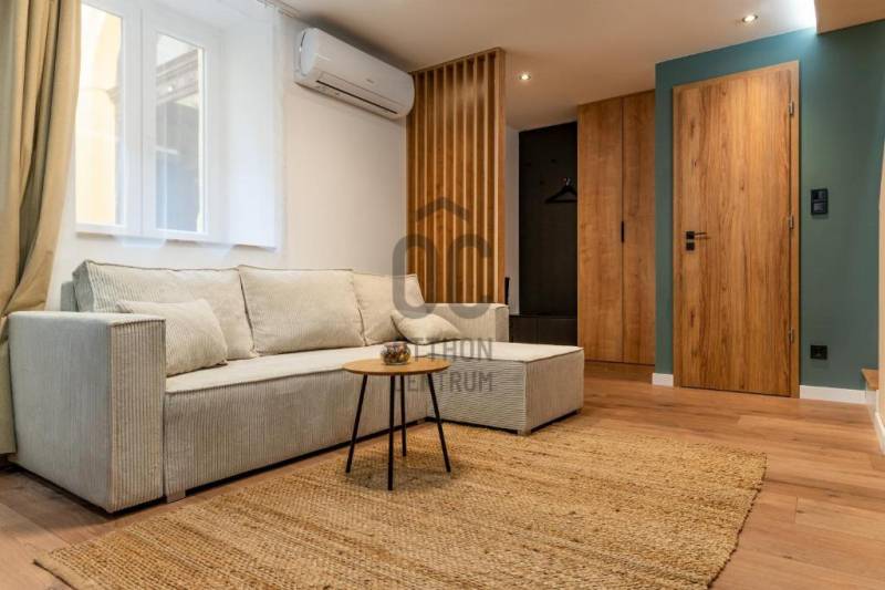 Kiadó egy különleges kialakítású, belső kétszintes lakás Budapest egyik legjobb lokációjában, a Teréz körúton, az Oktogon és a Nyugati tér között.A lakás nettó 23 m², bruttó 46 m², praktikus belső két szintes elrendezéssel.Az alsó szinten egy amerikai konyhás nappali található, valamint egy külön WC. A lakás ezen része bútorozott és gépesített, így azonnal költözhető.A felső szinten két külön hálószoba került kialakításra, mindkettő saját fürdőszobával, ami ritka és rendkívül kényelmes megoldás akár lakótársak számára is. A hálószobák szintén bútorozottak.A lakás földszinti, csendes belső udvarra néz, ezért a körút közelsége ellenére nyugodt lakókörnyezetet biztosít. Rezsi költsége alacsony.Főbb feltételek:Minimum bérleti idő: akár 6 hónapKözjegyzői okirat aláírása szükségesDohányzás nem megengedettKisállat és gyermek nem hozhatóLokációja kiváló: pár perc sétára található az Oktogon és a Nyugati tér, így a közlekedés és a városi infrastruktúra is elsőrangú. |
