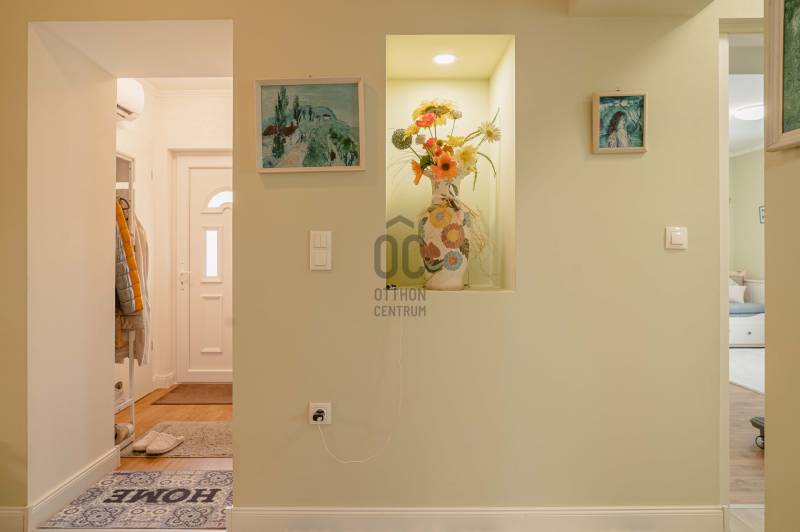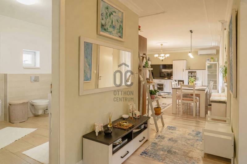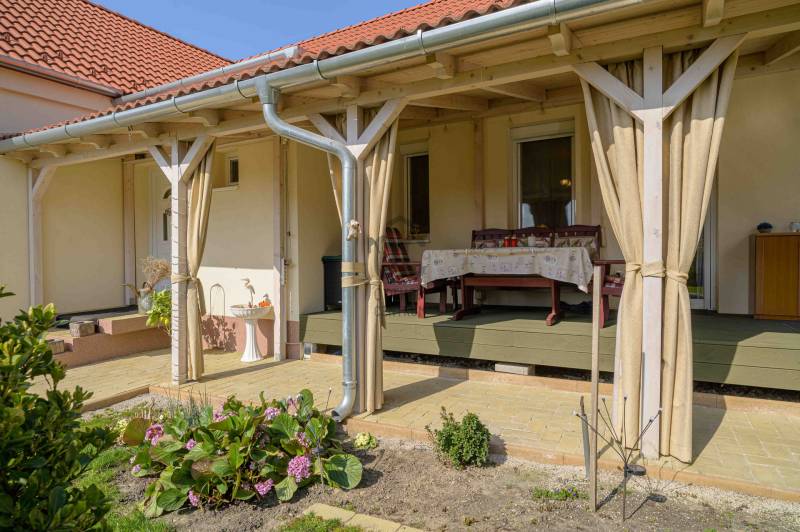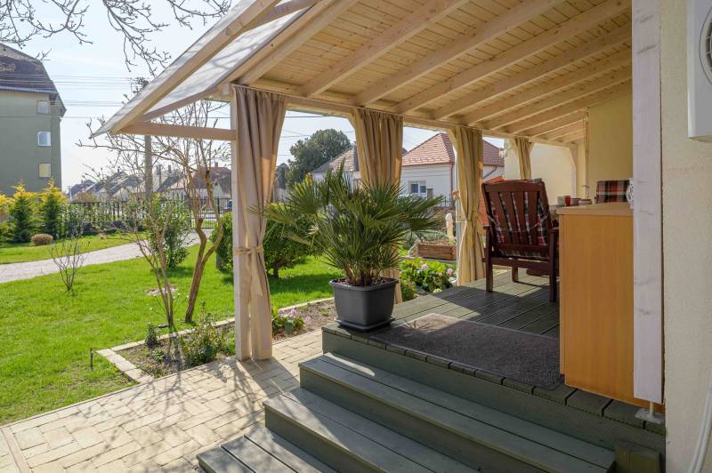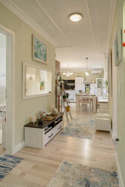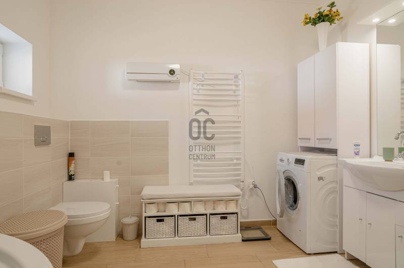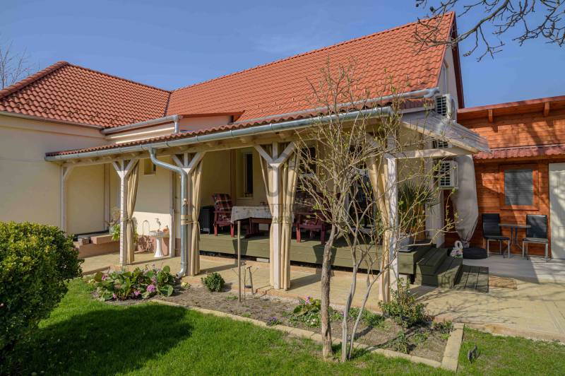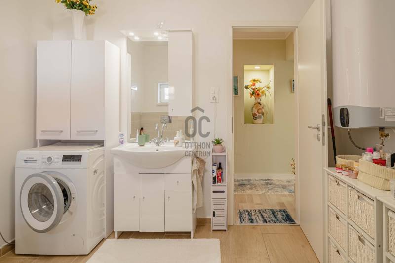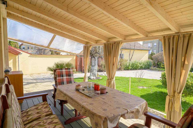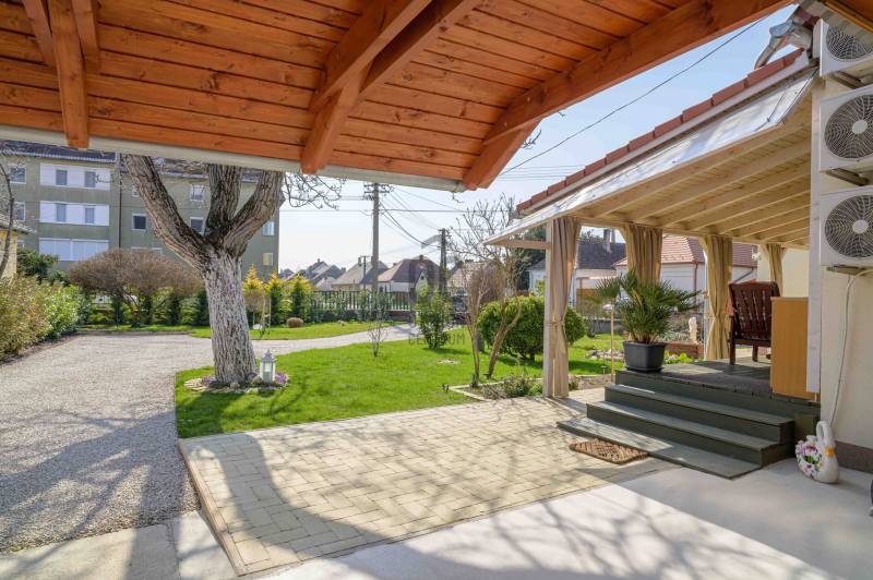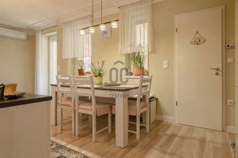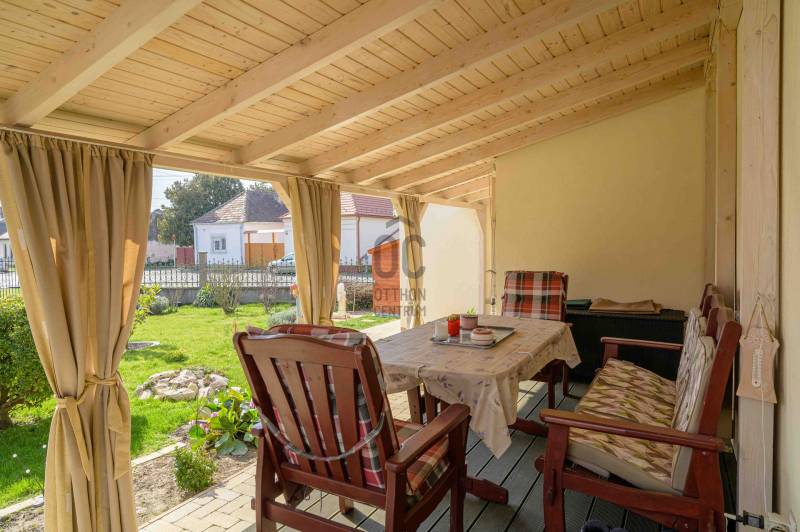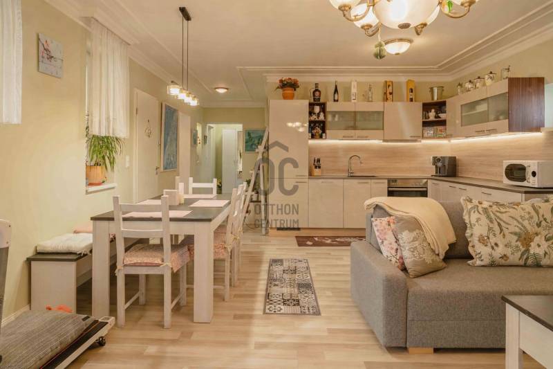 Keszthely belvárosának egyik forgalommentes utcájában eladó egy kiváló elosztású, barátságos családi ház. Ez az otthon tökéletes választás azoknak, akik a város központjában vágynak kertes házas kialakításra és modern belső terekre.Amiért érdemes megtekinteni:- Tágas közösségi tér: A ház lelke a nappali-étkező-konyha egy légtérben, amely világos, tágas és közvetlen kapcsolatot teremt a családi élet helyszínei között.- Ideális szobabeosztás: A házban 2 kényelmes hálószoba található, valamint egy külön dolgozószoba (vagy vendégszoba), ami tökéletes helyszínt biztosít az otthoni munkához vagy a látogatók fogadásához.- Praktikus részletek: A fürdőszoba mellett egy különálló vendégmosdó is helyet kapott, ami nagyban növeli a napi kényelmet.- Toszkán hangulatú terasz: A nappaliból kilépve egy mediterrán stílusú terasz várja, amely a reggeli kávézások és az esti baráti beszélgetések kedvenc helyszíne lesz.- Zöld oázis: A gyönyörű, rendezett kert igazi kikapcsolódást nyújt a mindennapokban.- Garázs és tárolás: Az ingatlanhoz duplabeállásos garázs és egy külön tárolóhelyiség is tartozik, így bőven van hely az autóknak és a hobbifelszereléseknek is.Kiváló elhelyezkedés:Minden sétatávolságra (Fő tér, boltok, iskolák), mégis teljes csend és nyugalom fogadja otthon. A Balaton-part is könnyen elérhető egy kellemes sétával.Ez a ház nemcsak egy ingatlan, hanem egy életérzés. Ide tényleg csak költözni kellA négyzetméterek és az alaprajz tájékoztató jellegű |