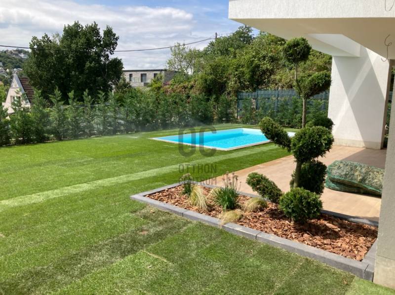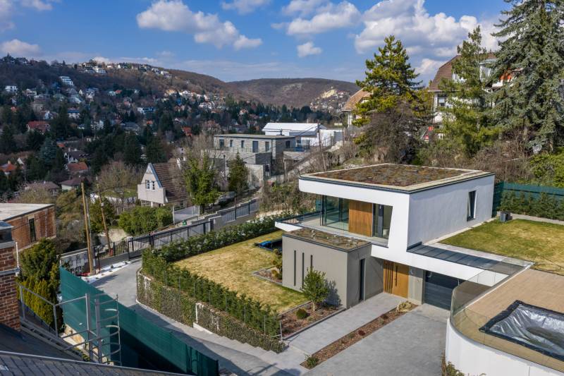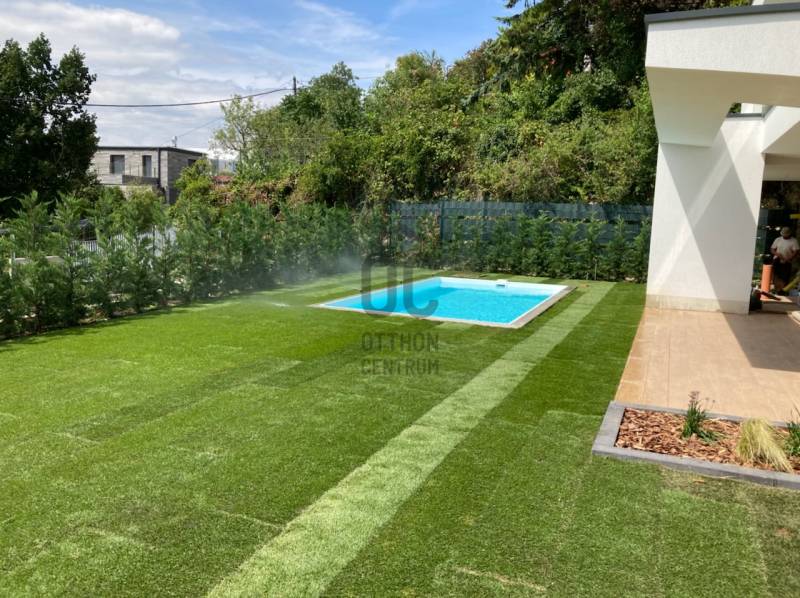 Újépítésű családi ház saját medencével, parkosított környezetben ÜDV ITTHON!Letisztult, kortárs építészet, valódi zöld környezet és magas műszaki tartalom – egy önálló családi otthon, amely a kerttel átgondolt egységet alkot.AZ ÉPÜLET ÉS KÖRNYEZET Három önálló épület egy nagy telken (önálló helyrajzi számon), igényesen parkosított környezetben: - gondosan megtervezett növényzet - gyepfelületek - automata öntözőrendszerrel ellátott kert - 6×3 méteres medence - otthoni wellness a nappali teraszárólEgy épület eladó már csak!FŐBB ADATOK- Nettó hasznos alapterület: 193 m² - Terasz: 44 m² - Különálló medence: 18 m² - Bruttó: 215 m² - Saját, kizárólagos használatú privát kert: 520 m² Funkcionális elosztás: - Nappali + 4 szoba - 2 fürdőszoba - 1 külön WC - Tároló - Fűtött garázs (3 autónak)- Mosókonyha - Gépészeti helyiség MŰSZAKI TARTALOM – HŐSZIVATTYÚ, KOMFORT, ENERGIAHATÉKONYSÁG - Önálló hőszivattyús rendszer - Szobánként külön vezérelhető mennyezethűtés- Padlófűtés a kiegyenlített hőérzetért - 30-as Porotherm X-Therm „okostégla” falszerkezet - 20 cm Dryvit hőszigetelés – korszerű, energiahatékony épületburok KULCSRAKÉSZ – PRÉMIUM RÉSZLETEKKEL Az épület elkészült, az ár tartalmazza: - Belsőépítész által tervezett, egységes belső koncepció - Asztalos által készített egyedi beltéri ajtók - Fürdőszobai beépített szekrények - Prémium TRES csaptelepek - Gépesített NOBILIA konyhabútor - Kültéren: parkosítás, öntözőrendszer, saját privát medenceKINEK AJÁNLOM? Annak, aki: - újépítésű házat, komplett életteret keres, - értékeli a magas műszaki tartalmat és az alacsonyabb üzemeltetési költségeket, - fontosnak tartja a privát kertet és a saját medencét, - hosszú távra, értékálló, prémium otthonban gondolkodik.Önnek nem mindennapos egy ilyen ingatlan megvásárlása, nekem minden napom erről szól. Ha szeretné részletesen átbeszélni a műszaki tartalmat és a személyre szabási lehetőségeket, keressen bizalommal – nézzük meg együtt, mit adhat Önnek ez az otthon.Budapest, Buda, II. kerület, 2. kerület, Remetekertváros, eladó ház, újépítésű, 5 szoba, nappali és 4 háló, 2 fürdő, vendég wc, 3 állásos garázs, nagy terasz, medence |