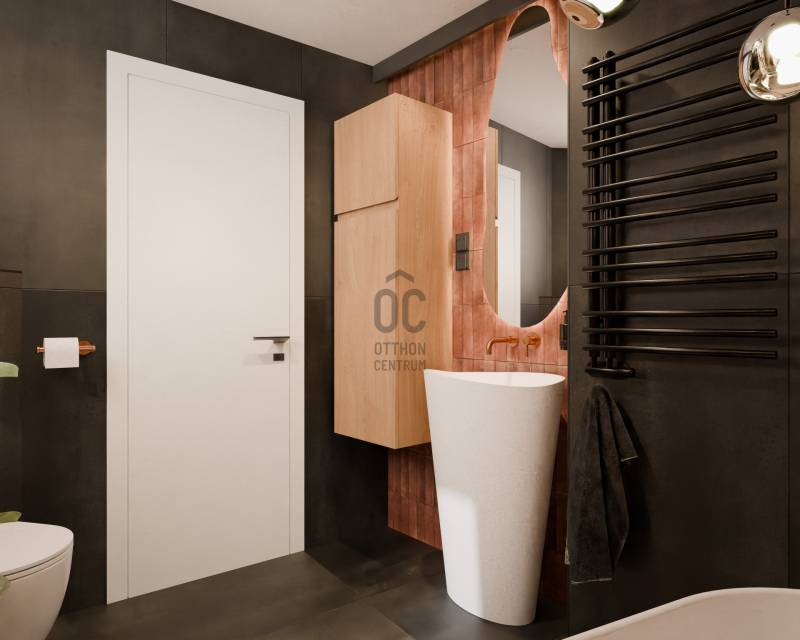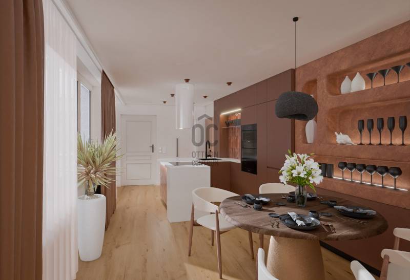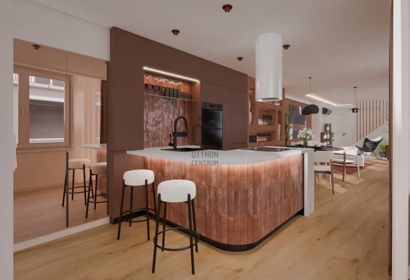 TETŐTERASZ A VÁROS FELETTLélegzetelállító tetőteraszos luxus penthouse Budapest V. kerületének szívében – kétszintes, exkluzív élettér a Veres Pálné utcában a Váci utca mellett.Budapest egyik legelegánsabb és leghangulatosabb utcájában kínálunk bérbeadásra egy nappali + 2 hálószobás, 2 fürdőszobás, gépesített konyhával rendelkező, teljeskörűen felújított és bútorozott tetőtér ráépítéses luxusingatlant.Miért tökéletes választás? Ez a belső kétszintes luxusotthon ritka lehetőség a belváros szívében: díjnyertes belsőépítész cég által átgondolt tereivel és privát wellness élményével tökéletes egyensúlyt kínál a városi élet pezsgése és a nyugodt otthoni pihenés között, ideális választás akár egyedülállóknak, családoknak vagy diplomáciai képviseletnek.LAKÁSRÓLAlsó szintA bejárati szinten egy tágas, közel 50 nm-es világos nappali–konyha–étkező tér található, ahol a nagy üvegfelületek természetes fénnyel töltik meg a lakást. Ezen a szinten kapott helyet egy külön nyíló hálószoba, egy kádas fürdőszoba, valamint egy praktikus háztartási helyiség is.Felső szint:A felső szinten kapott helyet a fő hálószoba, amely prémium berendezésével valódi lakosztály hangulatot teremt. Ezen a szinten található egy zuhanyzós fürdőszoba és egy tágas közlekedő is. A szint igazi különlegessége a 36 m²-es privát, panorámás terasz, ahonnan lenyűgöző kilátás nyílik a Gellért-hegyre és a Szabadság-szoborra. Ideális helyszín baráti összejövetelekhez, családi eseményekhez vagy akár reprezentatív fogadásokhoz.A lakás teljes körűen felújított, minden részletében prémium minőségű kivitelezéssel és modern építészeti megoldásokkal. Igényes bútorozottság és tágas tárolóhelyek teszik még kényelmesebbé az itt élést.ÉPÜLETRŐLAz épület a 19. század végének hangulatát idézi, klasszikus belvárosi polgári stílusjegyekkel. Az épület az elmúlt években teljes körű felújításon esett át, valamint ráépítéssel új szintekkel bővült ahol a penthouse is található. A korszerűsítés részeként üveges panorámalift is beépítésre került, így az épület nemcsak esztétikailag, hanem kényelmi szempontból is modernizálódott.A közös terek rendezettek, a lépcsőház tiszta és gondozott. A társasház stabil anyagi háttérrel működik, a közös költség mindössze 36.000 Ft havonta, amely a szokásos kiadásokat tartalmazza. A lakóközösség nyugodt és együttműködő.KÖRNYÉK ÉS KÖZLEKEDÉSA Veres Pálné utca Budapest történelmi belvárosának egyik csendes, mégis rendkívül központi elhelyezkedésű utcája. A közelben található a hangulatos Károlyi-kert, a Váci utca, a Fővám Téri piac, számos étterem, kávézó és szolgáltatás, valamint néhány perc sétára elérhető a Duna-part is.Közlekedési szempontból a lokáció kiváló: a közeli Ferenciek tere és Kálvin tér metró- és busz kapcsolatai gyors elérést biztosítunk a város bármely pontja felé. A környék gyalogosan is jól bejárható, a belváros kulturális és egyetemi központjai – például az Eötvös Loránd Tudományegyetem – rövid sétával elérhetők.Technikai információk:-Teljeskörűen felújított állapot-Első lakóját várja, Frissen berendezett, modern kialakítás-Modern gépészeti megoldások-Designer bútorok és olasz prémium burkolatok-Jacuzzis tetőteraszBérleti feltételek:Bérleti díj: 3.500 EUR / hó, azaz kb. 1.400.000 Ft / hóKaució: 2 havi kaució + 1 havi bérleti díjAmennyiben személyesen is megtapasztalnád az otthon atmoszféráját és a fantasztikus panorámás tetőterasz élményét, keress bizalommal, és egyeztessünk időpontot a megtekintésre! |