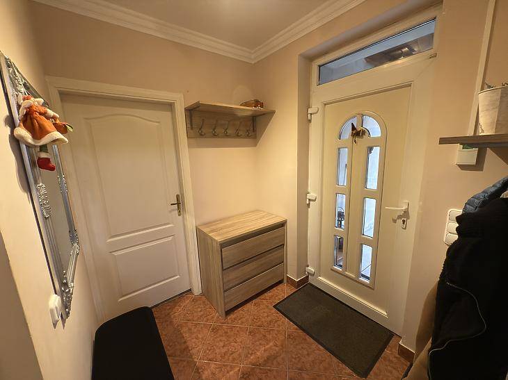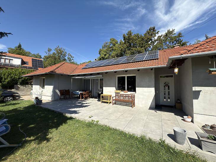 ELADÓ ÖNÁLLÓ, EGYSZINTES CSALÁDI HÁZ SZENTENDRÉN, A TYÚKOSDŰLŐN!KÖRNYEZET, ELHELYEZKEDÉSAz ingatlan Szentendre egyik csendes, nyugodt részén, a Tyúkosdűlőn található. Ideális választás mindazok számára, akik a természet közelségét keresik, mégis fontos számukra a jó megközelíthetőség.A buszmegálló mindössze 10 perc sétára van, ahonnan könnyedén elérhető Szentendre központja, valamint Budapest is.A HÁZ JELLEMZŐI- Lakóterület: 125 m²- Telek mérete: 1040 m²- Önálló, egyszintes kialakítás- Építés éve: 2000- Összközműves ingatlanMűszaki tartalom:- 38-as Porotherm tégla falazat- 10 cm kőzetgyapot homlokzati szigetelés- BRAMAC betoncserép tetőfedés- Vasbeton födém, 10 cm kőzetgyapot szigeteléssel (részben deszkázott)- 5 cm lépésálló szigetelés az aljzatban- Kétrétegű, hőszigetelt műanyag nyílászárók- 3x16 A elektromos hálózatGépészet és extra felszereltség:- Kondenzációs kombi gázkazán, vörösréz csövezéssel- 300 literes puffertartály- 5,8 kW-os napelemes rendszer (még 7 évig szaldó elszámolással)- Energetikai besorolás: A+- Elektromos padlófűtés a konyhában- RiasztórendszerKert és parkolás:- Esővíz gyűjtésére alkalmas, 3 m³-es ciszterna- Polikarbonát fedésű dupla kocsibeálló- További 3–4 autó parkolása megoldható telken belülFenntartási költség:- Rendkívül kedvező rezsi: kb. 12.000 Ft/hóFINANSZÍROZÁSAz ingatlan banki hitellel is megvásárolható, melyben irodánk díjmentes tanácsadással segíti Önt.Vevőink részére a közvetítés díjtalan!A hirdetésben szereplő adatok tájékoztató jellegűek. |