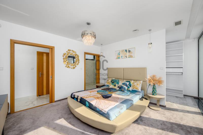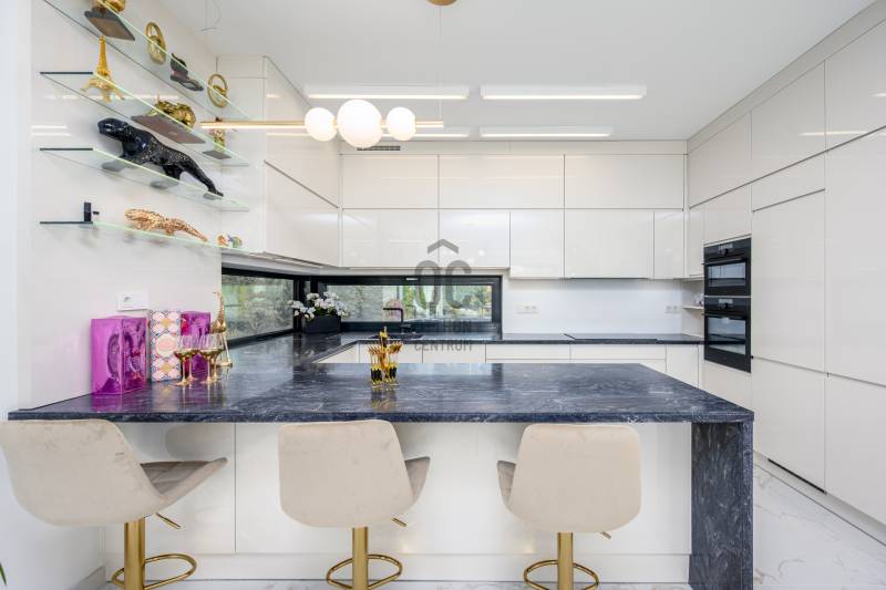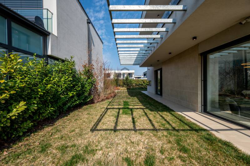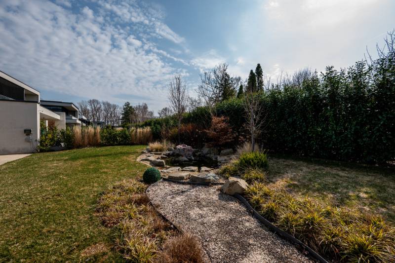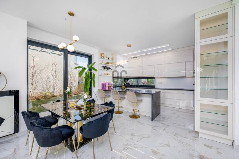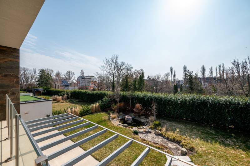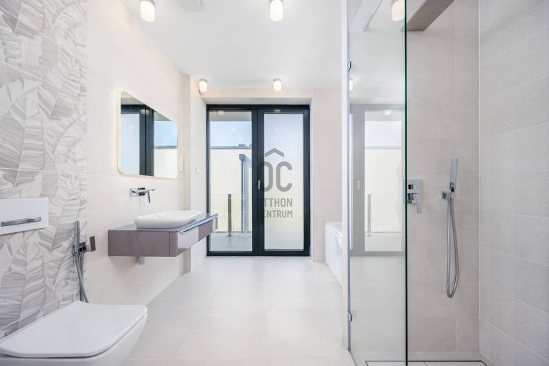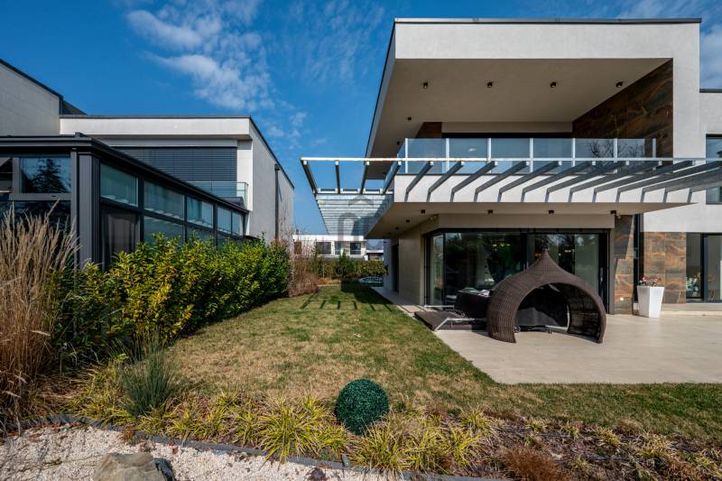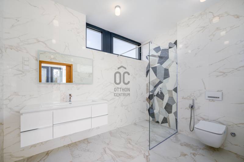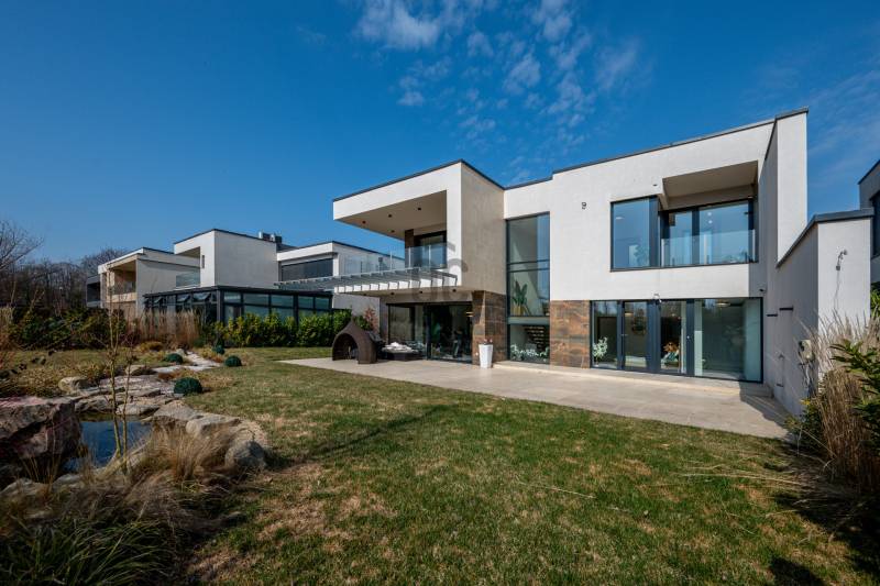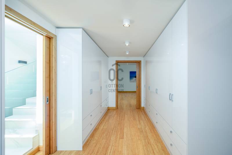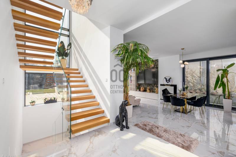 Budapest III. kerületének egyik legexkluzívabb, Duna-part közeli lakóparkjában, a The Village lakóparkban kínálunk megvételre egy különleges, minden részletében prémium minőségben kialakított luxusvillát.A közel 27.664 m² parkosított zöldterületen elhelyezkedő, zárt és őrzött lakópark a természet közelségét és a modern városi élet kényelmét ötvözi. A Duna-part néhány lépésre található, a gondosan megtervezett kert, a japán zen hangulatú park és az elegáns lakókörnyezet nyugodt, privát életteret biztosít a lakók számára.A kb. 800 m²-es telken álló, háromszintes villa közel 300 m² lakóterülettel, 60 m² terasszal és 42 m² erkéllyel rendelkezik. A ház terei nagyvonalúan megtervezettek, világosak és elegánsak, a belső kialakítás során pedig minden részletnél a minőség és az időtálló design volt a meghatározó.A földszinten egy tágas, egy légterű nappali–étkező–konyha kapott helyet, amely közvetlen kapcsolatban áll a terasszal és a kerttel. A prémium kategóriás konyha felsőkategóriás AEG beépített gépekkel, borhűtővel, corian munkalappal és egyedi tervezésű konyhabútorral készült. A nappali eleganciáját egy modern biokandalló emeli ki.Az emeleten három kényelmes méretű hálószoba, gardrób és két fürdőszoba található, amelyekhez erkélyek kapcsolódnak. A földszinten külön szülői lakrész biztosítja az intim, nyugodt privát teret saját gardróbbal és fürdőszobával.A garázsszinten kétállásos, fűtött garázs kapott helyet elektromos autó töltési lehetőséggel, valamint tároló, mosókonyha, gépészeti helyiség és egy hobby szoba is kialakításra került.A villa műszaki felszereltsége a legkorszerűbb technológiát képviseli. A LOXONE okosotthon rendszernek köszönhetően a ház számos funkciója – például a fűtés-hűtés, világítás vagy egyéb rendszerek – akár telefonról is vezérelhető, így a mindennapi kényelem és energiahatékonyság maximálisan biztosított.A komfortot többek között az alábbi rendszerek szolgálják:- Mitsubishi Zubadan hőszivattyú- mennyezeti hűtés-fűtés és padlófűtés- fan-coil rendszer- teljes szellőztető rendszer- Schüco alumínium, háromrétegű üvegezésű nyílászárók- riasztó- és kamerarendszerA kertben egyedi tervezésű japán zen kert található kerti tóval, automata feltöltő és öntözőrendszerrel, valamint hangulatos kertvilágítással, amely különleges atmoszférát teremt.A lakópark lakói számára közösségi épület és nagyméretű medence is rendelkezésre áll, valamint wellness részleg kialakítása is folyamatban van. A terület biztonságáról 24 órás portaszolgálat és sorompós beléptetés gondoskodik.Ez az ingatlan ideális választás mindazok számára, akik a Duna közelségében, elegáns és biztonságos környezetben keresnek különleges otthont, ahol a természet nyugalma és a városi élet kényelme egyszerre van jelen.További információért és megtekintéssel kapcsolatban keressen bizalommal. |