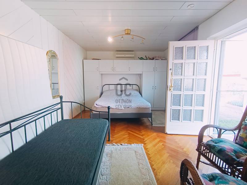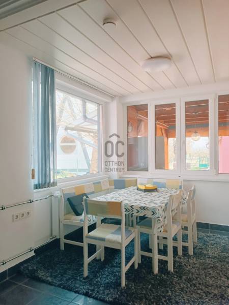Ábrahámhegy egykori kikötőépülete egy kő falazatú kis villaépület volt a századfordulón. A régi térképek tanulsága szerint ezen épülettel szemben indult azon kijáró, amelyről a vízi szállítást akkortájt megoldották.Ezen épület ma már egészen más arcát mutatja, bár a szemfülesek megtalálják benne azon részleteket, amelyek tanúskodnak az akkori építőmesterségről, a telek pedig mit sem változott azóta, most is a Balaton partjáig fut, saját stéggel a végén.A vastag falazaton belül ma már egy teljesen felújított, modern, tágas és napfényes lakóházat találunk, amelynek a belmagassága 290 cm! A lakóépület hasznos alapterülete 56 nm, amelyben tágas nappali, napfényes étkező és két nagy hálószoba kapott helyet a konyha és a fürdőszoba mellett.A bejárat előtt kényelmes, árnyas, fedett, 22 nm-es teraszt alakítottak ki, ahol egy egész család és a vendégsereg elfér.A telken egy konyhával, fürdőszobával felszerelt vendégház is van, valamint háztartási helyiség és egy tágas, mindent elnyelő tároló a csónakoknak, kajakoknak, és minden egyéb vízi és szárazföldi felszerelésnek.A telek egy almafás gyümölcsössel folytatódik, majd a nádas felé még egy zárható vízieszköz-tároló található. A saját, kizárólagos használatú 12 nm-es engedélyes stég végül a nyílt Balaton felé enged szabad utat. A terület 1462 nm-es, Üh-01-es besorolás alá esik, így 15%-ban beépíthető!A mai kívánalmaknak megfelelően az ingatlan technikai jellemzői is garantálnak minden kényelmet:Garázsépület, kövezett bejáró, távirányítós tolókapu, központi kódos zárrendszer, öntözőberendezés a teljes kertben, teraszlezáró rolórendszer, központi gázfűtés, hűtő-fűtő klímák minden helyiségben, spotlámpás világítórendszer, felszerelt konyha, mosó- és szárítógép, hőszigetelt falak, 3 rétegű thermo nyílászárók, mindez szinte új állapotban!Az ingatlan egyedülálló a maga nemében! Horgászoknak, horgásztatóknak, horgászegyesületeknek és Balatonimádóknak kihagyhatatlan lehetőség! |