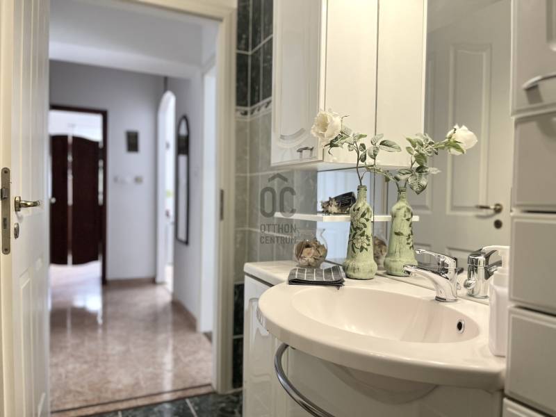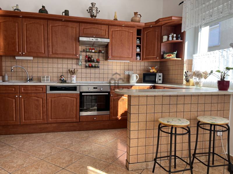 Összeköltözők, nagycsaládosok figyelem!Budapest XVIII. kerületének egyik legjobb részén, a csendes, családi házakkal övezett Bókaytelepen, a Szélmalom utcában kínálunk megvételre egy kiváló adottságokkal rendelkező, folyamatosan karbantartott, szigetelt, kétlakásos, háromszintes, téglaépítésű családi házat. Az utcafronttól előkert választja el.Az ingatlan 1/1 tulajdonjogú, jogilag teljesen önálló. Ikerház, de telekmegosztással saját helyrajzi számot kapott.Két külön lakás került kialakításra, külön mérőórákkal.Nagy előny a ZÁRT LÉPCSŐHÁZ (10,8 m²) , így a tetőtéri lakás és a szuterén is az udvar érintése nélkül, belső lépcsőházon keresztül közelíthető meg.Az ingatlan részei: • földszinti lakás• emeleti ( tetőtéri) lakás• szuterén - szerelőaknával ellátott garázzsal• zárt lépcsőházA KERT 539 m²-es, gyönyörűen gondozott, igazi családi élettér.Kiváló sütögetésre, családi rendezvényekre, pihenésre.• épített, fedett szaletli• kemence, sparhelt és kinti mosogató• fúrt kút• kiépített öntözőrendszer• térkövezett kocsibeálló akár 3 gépjármű számáraFÖLDSZINTI LAKÁS – 90,2 m² + 12 m² teraszKiváló állapotú, kellemes hangulatú, rendkívül napfényes lakás.Belmagasság: 3,12 mHelyiségek:• kényelmes méretű előszoba• nagyméretű amerikai konyhás nappali• 3 külön nyíló szoba• tágas fürdőszoba sarokkáddal és épített zuhannyal• külön mellékhelyiség• közlekedőA nappali és hálószoba klímával szerelt.A konyha különleges megoldással két irányból megközelíthető (közlekedő irányából lengőajtón keresztül illetve a nappali-étkező irányából is)Minőségi műanyag nyílászárók vannak redőnnyel és szúnyoghálóval ellátva.Fűtése: gázkazán és fatüzelésű kazánMeleg víz villanybojler által.A fürdőben törölközőszárítós radiátor és padlófűtés biztosítja a meleget.A lakáshoz 12 m²-es terasz tartozik.TETŐTÉRI LAKÁS – nettó 76,4 m² (bruttó 95,3 m²) + 12 m² fedett terasz2005-ben utólagos tetőtér-beépítés által épült.A lakás jó adottságú, kevés ráfordítással igazán különleges otthonná alakítható.Helyiségek:• nagyméretű előszoba (beépített szekrény számára alkalmas térrel)• amerikai konyhás nappali• 3 külön nyíló szoba ( ferde tető kialakítással)• külön WC• fürdőszoba• közlekedőAz amerikai konyhás nappali különleges, impozáns tér látszó gerendákkal, a tetőgerincnél 4,5 m-es belmagassággal.A többi helyiségben a belmagasság 2,65 m.A ferde tető alatti, 1,90 méternél alacsonyabb terek is jól kihasználhatókA nappali klímával szerelt.Fűtése: gázcirkóSZUTERÉN - alagsor ablakokkal és fűtéssel ellátva, 100 m²-en.Részei:• kazánház• konditerem• konyha• spájz• mellékhelyiség• SZERELŐAKNÁVAL ELLÁTOTT GARÁZS (36,95 m²), a szuterén szintenIdeális választás:• két generáció összeköltözésére• nagycsaládosoknak• vállalkozás + lakhatás kombinációjára• befektetésre, bérbeadásraNyugodt, családbarát környék, kiváló infrastruktúra, zöldövezet, mégis jó közlekedés, boltok, piac. Iskola, óvoda a közelben.A közelben található a Bókay-kert, amely sportolási, kikapcsolódási és családi programlehetőségek széles választékát kínálja.Ha egy valóban jól kihasználható, értékálló, kétgenerációs otthont keres a XVIII. kerület egyik legjobb részén, ezt az ingatlant érdemes megnéznie! |