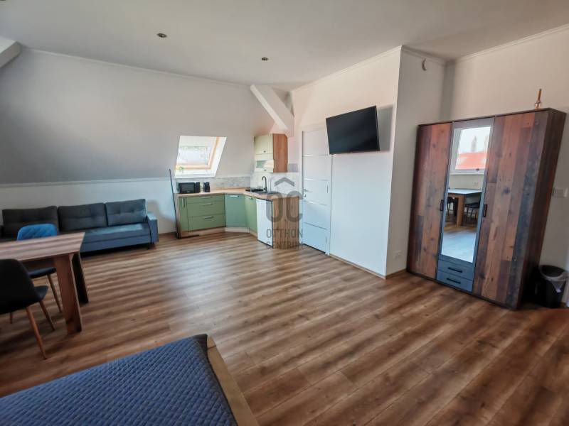 Balatonszárszó szívében eladó egy tágas35m²-es, amerikai konyhás nappalis lakás, teljes körűen felújított épület első emeletén. Ideális választás nyaralónak vagy befektetésnek egyaránt. Azonnal birtokba vehető.A lakás modern, világos, amerikai konyhás nappalival, nyitott hálórésszel rendelkezik. Teljesen berendezett, minden bútor és tároló rendelkezésre áll.Főbb jellemzők• Alapterület: 35m² • amerikai konyhás nappali, nyitott hálórész elrendezéssel• elektromos infra fűtés / hűtő-fűtő klímaberendezés• saját víz- és villanyóra• tehermentes, azonnal költözhető• beépített bútorok és tárolók a hely maximális kihasználásáraElőnyök• közös használatú kert pihenésre és szabadidőre• parkolóhely minden lakás számára• rendezett, barátságos környezetben • kiváló környék, közel minden szolgáltatáshoz:élelmiszerbolt, egészségügyi és szépségápolási szolgáltatások éttermek, kávézók.• Balaton-part mindössze 10 perc sétára• teljes körűen felújított, újszerű épület• közös területek: zöld terület, játszótér✔ Központi mégis nyugodt környék✔ nyaralónak vagy befektetésnek ideális✔ stílus és kényelem egybenEz a lakás nemcsak otthon vagy nyaraló hanem kiváló befektetési lehetőség is, hiszen a Balaton körüli ingatlanpiac folyamatosan növekszik, és a jövőbeli értéknövekedés garantált. Bármilyen kérdése van, szívesen állok rendelkezésére. Élj a lehetőséggel, és találj rá álmaid lakására Balatonszárszón!Ez az ingatlan a \"Felező csomag\" megbízási portfólióhoz tartozik. Részletek az Otthon Centrum weboldalán. |
