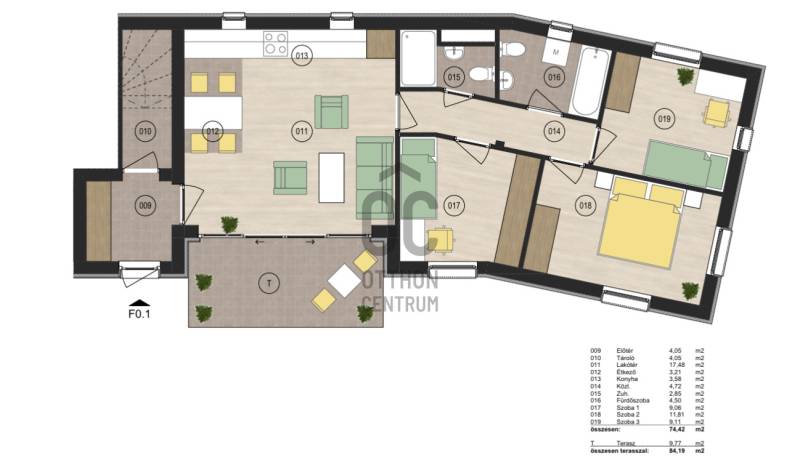 A megjelölt vételár, szerződéskötéskor 100 % befizetésével érvényes !Egyéb fizetési ütemezés esetén az ár változik, erről kérjen bővebb felvilágosítást !!Az ingatlan a földszinten helyezkedik el, terasz kapcsolatos.Projekt bemutatásaDebrecen kedvelt, és egyik legértékálóbb részén, a Hatvan Utcai kert csendes utcájában, közel a Kenézy kórházhoz épül, egy 5 lakásos társasház.Az ingatlan a legmodernebb építőanyagokkal, szerkezeti elemekkel lesz megépítve.Minden lakás terve átgondolt, élhető tereket tartalmaz, jó kiosztású, modern elrendezésű.Várható átadás : ha minden jól megy 2026 év vége, de max 2027 tavasza.A társasház felépítése : Földszinten : 1 db lakás ( 74,42 m2 ) + teraszkapcsolattal ( 9,77 m2 ) , 5 db gépkocsitároló és 5 db tárolóEmelet : 2 db lakás erkéllyel ( egyik lakás :74,42 m2 + 9,77 m2 erkély , a másik lakás : 62,87 m2 + 4,1 m2 erkély )Tetőtér : 2 db lakás ( egyik lakás : 57,2 m2 , a másik lakás: 52,18 m2 )Műszaki jellemzői :- Leier 30 NF tégla főfalak- Leier 10 Nf tégla válaszfalak- homlokzati, lábazati szigetelés : 15 cm polisztirol- nyeregtetős tetőszerkezet, betoncserép héjazással- nyílászárók : műanyag , 3 rtg - ű üvegezés a 6 légkamrás profilban ( prémimum német minőség, szinezett kivitelben )- fűtés : levegő - víz hőszivattyú alkalmazással lesz megvalósítva, padló hőleadókkal , vizes helyiségekben törölköző szárítóval - árnyékolás : elektromos vezérlésű aluminium redőny- erkély : edzett üveg betétekkel- kaputelefonos és kódzárós beléptető rendszer- udvar : térkövezés, füvesítés, parkosítás, kandellábelek az udvaron kivitelezésre kerülnekMűszaki tartalom:- beltéri ajtók : borovi dekorfóliás, 5 féle választható szinben- hidegburkolat : 8.200 Ft/m2 bruttó ár- melegburkolat : 8.500 FT/m2 bruttó ár- zuhanykabin : 89.280 Ft/db nettó ár- mosdó : 25.500 Ft/db nettó ár- fürdőkád : 101.500 Ft/db nettó ár- beépített wc : 58.600 Ft/db nettó ár- zuhany csaptelep : 26.280 Ft/db nettó ár- mosdó csaptelep : 25.700 Ft/db nettó ár- kádtöltő csaptelep : 29.500 Ft/db nettó árAz ingatlan előnyei : nagyon jó lokáció, kis lakóközösség, modern kivitelezés, a korszerű technológiák alkalmazása miatt kiváló energetikai besorolás, alacsony fenntartási költség, stb...Ha felkeltettem az érdeklődését, kérem hívjon bizalommal, akár hétvégén is, adok tájékoztatást, és amennyiben érdeks lehet a helyszínen bemutatom az ingatlant.Köszönöm, hogy elolvasta !!! |