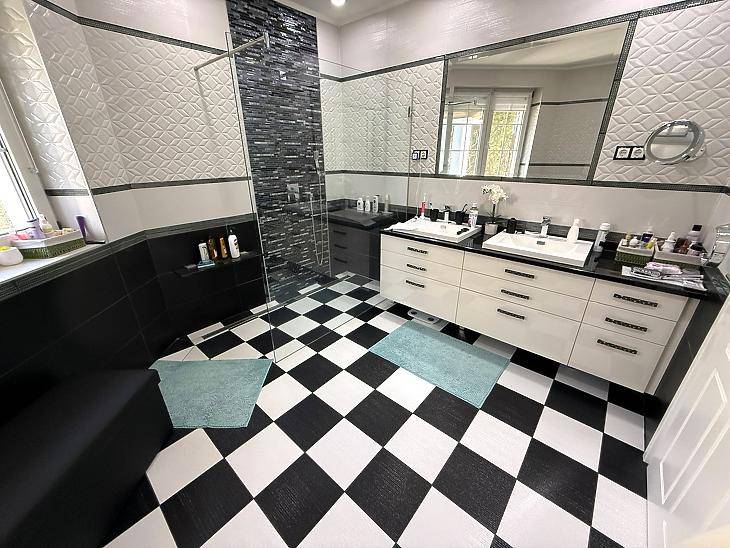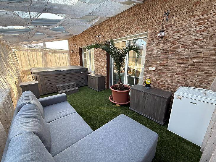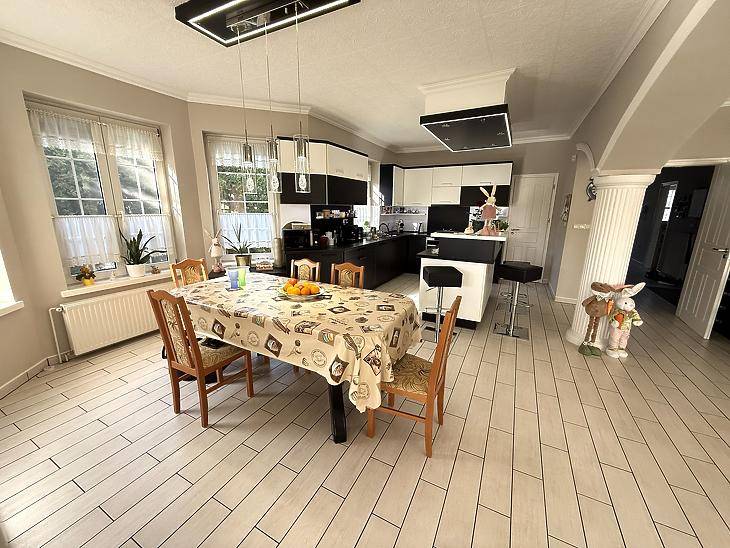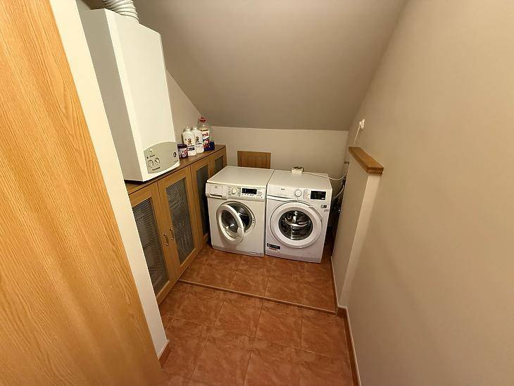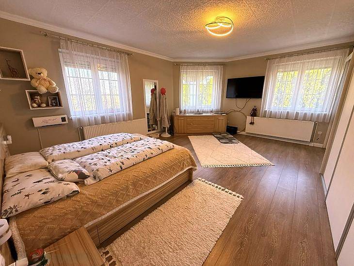 XVII. KERÜLETBEN, RÁKOSCSABÁN ELADÓ EGY 436 NM-ES, ÖNÁLLÓ CSALÁDI HÁZ, AMELY EGY 1805 NM-ES, GONDOZOTT TELKEN HELYEZKEDIK EL, FŰTÖTT, FEDETT MEDENCÉVEL, 2 ÁLLÁSOS GARÁZZSAL, ÉS 5 DB GÉPKOCSIBEÁLLÓVAL.A ház 2000-ben épült, masszív tégla szerkezettel, beton alappal és födémmel. A homlokzat dryvit szigetelést kapott, a födém szintén szigetelt. A nyílászárók minden helyiségben műanyag, elektromos redőnnyel felszerelve.A ház modern műszaki felszereltségű: napelem, kamera és riasztó rendszerrel rendelkezik.A fűtést gázcirkó és vegyestüzelésű kazán biztosítja. A földszinten a konyhában, étkezőben, fürdőszobában és közlekedőben padlófűtés növeli a komfortérzetet. Minden szobában és a nappaliban hűtő-fűtő klíma került beépítésre. A melegvíz ellátásról gázcirkó és villanybojler gondoskodik.A földszinten tágas nappali található kandallóval, amely kellemes hangulatot teremt. A helyiségek burkolatai igényesek: a nappali és a hálószobák parkettával, míg a többi helyiség járólappal burkolt. Az emeleten a szobák parkettásak, a gardrób padlószőnyeggel borított, a további helyiségek pedig járólapos kialakításúak. A kert gyönyörűen parkosított, ideális pihenésre és kikapcsolódásra. A telken, egy fűtött és fedett medence, valamint egy hangulatos kültéri kemence és grill sarok került kiépítésre.Az 52 négyzetméteres télikert kialakításának köszönhetően az év minden szakaszában ideális helyszínt biztosít pihenésre és kikapcsolódásra.ELRENDEZÉS:Földszint: Amerikai konyhás nappali + étkező, szoba, zuhanyzós fürdőszoba + wc, külön wc, gardrób, kamra, előszoba, beépített terasz (52 nm), terasz (11 nm).Emelet: 5 szoba, kádas fürdőszoba, + wc, gardrób, közlekedő, mosókonyha, erkély.Szuterén: kondi terem, zuhanyzó + wc, tároló, közlekedő, kazánház.KÖRNYÉK: Közelben található iskola, óvoda, gyógyszertár, orvosi rendelő, bevásárlási lehetőség. Az Mo-ás autópálya 3 perc alatt közelíthető meg.IRÁNYÁR: 430 M FT VEVŐINK RÉSZÉRE A KÖZVETÍTÉS DÍJTALAN!A hirdetésben szereplő adatok tájékoztató jellegűek. |