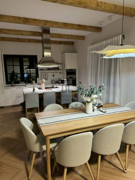 Egyedi hangulatú, prémium minőségben megépített otthon azoknak, akik nem akarnak kompromisszumot kötni.Ez a 2024-ben épült, nettó 145 m²-es családi ház nem egy sablon újépítésű ingatlan: már az első pillanatban érezhető a tudatos tervezés, az átgondolt terek és a minőségi kivitelezés összhangja.Főbb adatok•Lakótér: 145 m²•Telek: 720 m²•Elrendezés: nappali + 3 hálószoba•Építés éve: 2024•Állapot: újszerű•Energetika: A+•Parkolás: 2 autó számára telken belüli beálló•Kiköltözés: 2–3 hónapon belülÉlhető, jól átgondolt terekA ház központja egy közel 50 m²-es nappali–konyha–étkező, amely világos, tágas és valódi élettérként funkcionál – ideális családi együttlétekhez és vendégfogadáshoz is.A 3 külön nyíló hálószoba jól szeparált, és mindegyikhez saját gardrób tartozik – ez a ritka és kifejezetten praktikus megoldás jelentősen növeli a komfortérzetet.Külön mosókonyha és gépészeti helyiség is kialakításra került, így a mindennapi funkcionalitás is magas szinten megoldott.Minőség, ami hosszú távon is értékAz ingatlan nem kivitelezői minimum szinten készült.Főbb műszaki jellemzők:•15 cm hőszigetelés•korszerű gépészet•padlófűtés•hűtő-fűtő klíma•kandallóAz A+ energetikai besorolás alacsony fenntartási költséget biztosít.Kert – lehetőség, nem kompromisszumA 720 m²-es telek ideális méretű, a kert jelenleg nincs teljesen kialakítva.Ez lehetőséget ad arra, hogy új tulajdonosa saját igényei szerint alakítsa ki – legyen szó modern, letisztult kertről vagy családbarát zöld környezetről.ParkolásA telken belül két autó számára biztosított kényelmes beállás.Igény esetén fedett beálló vagy garázs is kialakítható.LokációRákoscsaba kertvárosi része nyugodt, családbarát környezetet kínál, miközben a mindennapi infrastruktúra és a város is elérhető távolságban marad.Kinek ideális?•akik nem akarnak építkezni és ezzel járó bizonytalanságot vállalni•akik értékelik az egyedi megjelenést és nem sablon házat keresnek•akik számára fontos a minőség és a jól használható terekÖsszegzésEz az ingatlan nem a tömegpiacnak készült.Azoknak szól, akik egy kész, igényes és karakteres otthont keresnek, ahol a minőség, a térérzet és az átgondolt kialakítás valóban érezhető.További információért és megtekintésért keressen bizalommal! |