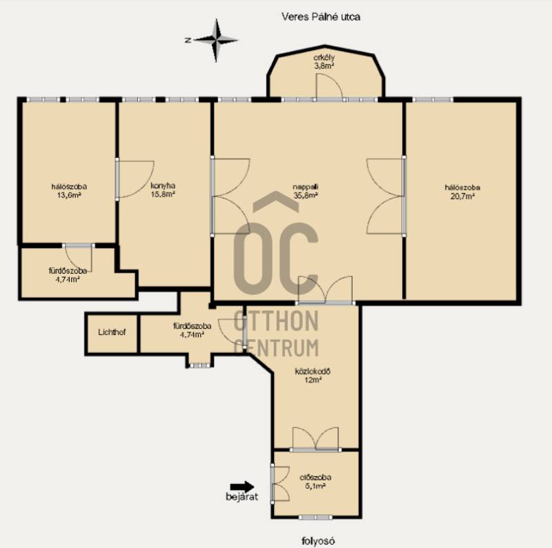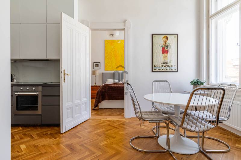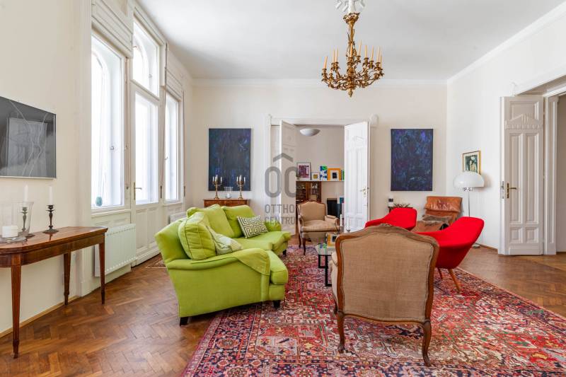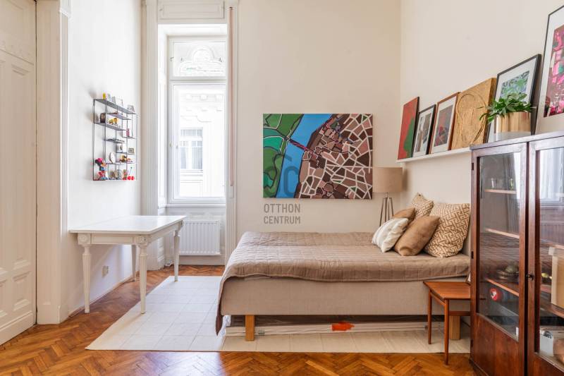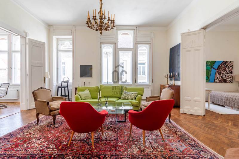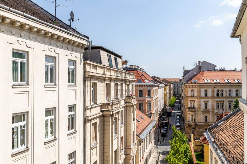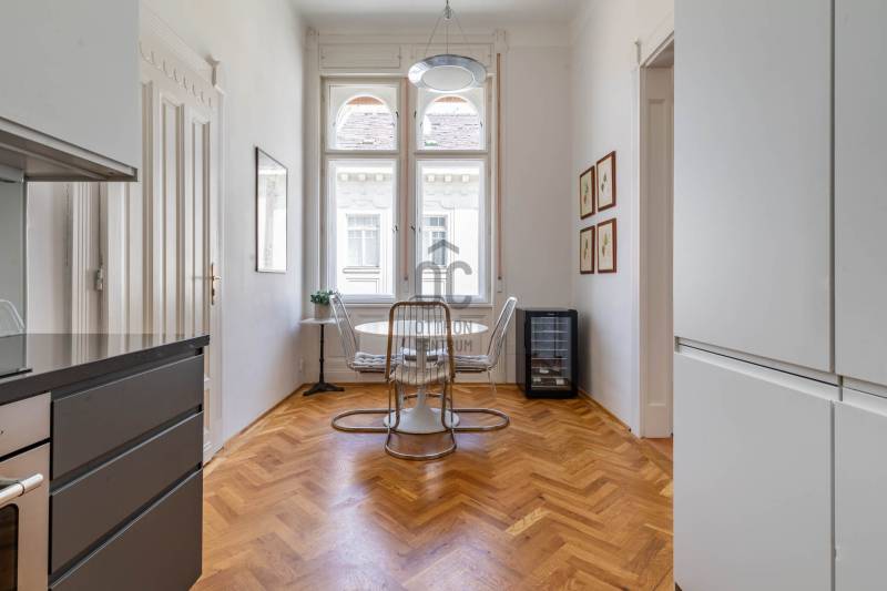 A belvárosban ritkán találni olyan nagypolgári lakást, ami egyszerre őrzi a klasszikus értékeket és valóban élhető, világos tereket kínál. Magas emelet, erkély, hatalmas ablakok és egy időtálló elegancia – ez a lakás pontosan ezt adja. Üdv itthon!RÖVID ÖSSZEFOGLALÓBudapest V. kerületében, a Veres Pálné utcában, a Fővám tér közelében, liftes társasház magas emeletén kiadó egy 113 m²-es + 3,8 m² erkélyes, nappali + 2 hálószobás, külön konyha-étkezős, 2 fürdőszobás, napfényes, klasszikus polgári lakás.Miért pont ez a lakás?- Nagypolgári hangulat: 4,2 m belmagasság, halszálkás parketta, díszes nyílászárók- Közel 36 m²-es nappali, 4 hatalmas ablakkal- Erkélyes – ritkaság ezen a környéken- Kiváló elosztás, akár külön lakrész is kialakítható- Világos, keleti tájolás – reggeli napfény az egész lakásban- Liftes, rendezett házOTTHONA lakás nagy alapterületének és átgondolt elrendezésének köszönhetően kényelmes, jól használható tereket kínál. A funkciók logikusan elkülönülnek, mégis egységes, áramló térérzet jellemzi.Az előszobából egy tágas közlekedő nyílik, amely dolgozóként is jól használható. Ebből érhető el a vendég fürdőszoba, amelynek különlegessége az eredeti, festett ólomüveg, így természetes fényt kap a lépcsőház felől.A nappali a lakás központi tere: közel 36 m² alapterületű, 4,2 méteres belmagassággal. Négy nagyméretű ablak néz a Veres Pálné utcára, keleti tájolásának köszönhetően reggel napfényben úszik. Az erkély a nappaliból nyílik, ahonnan hangulatos belvárosi panoráma tárul elénk: tetők, templom és a Veres Pálné utca karakteres látványa.A nappali két oldalán helyezkednek el a hálószobák, így jól szeparált, mégis egységes térszerkezet alakul ki. A kisebb hálószoba az étkező felől közelíthető meg, és saját fürdőszobával rendelkezik, így önálló egységként is használható. A nagyobb, 21 m²-es hálószoba tágas, jól berendezhető. TÁRSASHÁZA ház liftes, azonban a lift a földszintről néhány lépcsőn keresztül érhető el. A lakás a függőfolyosó elején helyezkedik el, közvetlenül a lépcsőház és a lift közelében.A közös költség 48 000 Ft, amely tartalmazza a szemétszállítást, lift karbantartást, takarítást és a felújítási alapot. Minden egyéb fogyasztás egyedi mérés alapján fizetendő. A fűtés modern, elektromos rendszerrel megoldott: a hidegburkolt helyiségekben padlófűtés, a többi helyiségben radiátoros hőleadás működik.LOKÁCIÓ – DÉL-BELVÁROSEz a környék Budapest egyik legélhetőbb része. Pár perc sétára a Duna-part, a Vásárcsarnok, kiváló éttermek és kávézók találhatók. A Szabadság híd és a Gellért-hegy közelsége miatt a mindennapok része lehet egy esti séta vagy kikapcsolódás.Kiváló közlekedés:- 47–49 villamos- M3, M4 metró, minden pár percen belül elérhetőMilyen feltételekkel bérelhető az ingatlan?- minimum 12 hónap- 2 havi kaució- gyerek és kisállat megengedett- dohányzás kizárólag az erkélyen- azonnali költözésHa egyedi, karakteres otthont keresel, amit nem jön szembe minden sarkon, akkor megtaláltad.Keress bátran és egyeztessünk megtekintési időpontot!----------------------------------------------A hirdetésben szereplő információk tájékoztató jellegűek. A tévedés és az árváltoztatás jogát fenntartjuk. Az esetleges elírásokért és technikai hibákért felelősséget nem vállalunk. |
