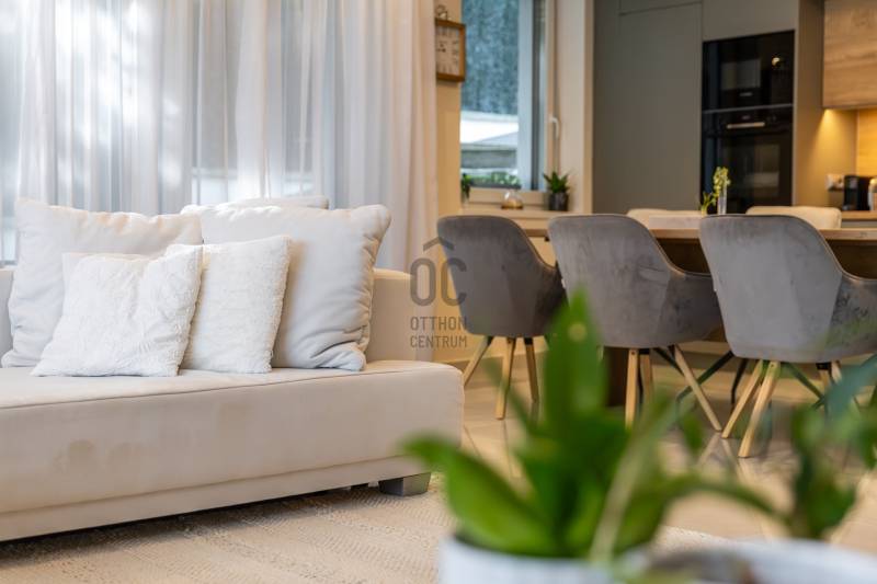 Finoman megkomponált otthon, ahol a fény és a csend egy nyelvet beszél. - Üdv itthon!RÖVID ÖSSZEFOGLALÓBudapest III. kerületében, a méltán kedvelt, és keresett Testvérhegy a Jablonka útján vált elérhetővé ez a 2020-ben épült családi ház. Az épület háromszintes, 162 m²-es, négyszobás elrendezésű, két fürdőszobával és egy vendégmosdóval, tágas terasszal és erkélykapcsolattal, valamint saját kerttel.Fűtését gázcirkó látja el padlófűtés és radiátor kombinációjával, a nyári komfortot klíma biztosítja.A házhoz 423 m²-es kert, és két garázshely tartozik, melynek árát a vételár tartalmazza, csak úgy, mint a beépített bútorzatot, és gépesítést.LOKÁICIÓ ÉS KÖRNYEZETA Jablonka út környéke a III. kerület egyik legkedveltebb családiházas övezete – közel a csodás hegyvidéki erdőkhöz, kiránduló helyekhez, - mint a Virányos-nyereg, a Vihar-hegyi kilátópont vagy a híres Guckler Károly-kilátó - mégis néhány percnyire a várostól.Napjaink legkeresettebb lokációi bírnak ezzel a két fontos tulajdonsággal. Az utóbbi évtizedben nem várt módon felértékelődött a természetközeli helyek értéke, azonban a modern életstílus megköveteli, hogy könnyen és gyorsan elérhető legyen a város annak minden szolgáltatásával.Ez a kombináció verhetetlen napjaink ingatlanpiacán, és a Jablonka út ennek egyik ékes példája.Néhány perc alatt elérhető az Árpád -híd és a Margit sziget, aReggel, amikor elindul az ember otthonról, egy ismerős arc köszön az utcán – ez a fajta közvetlenség jellemzi a környéket.A mindennapi élethez szükséges szolgáltatások (boltok, gyógyszertár, iskola, óvoda) minden itt van kézközelben.ÉPÜLETA 2020-ben épült ház kortárs, visszafogott eleganciát képvisel.Világos homlokzatát grafitszürke részletek és üvegkorlátok tagolják, a tágas nyílászárókon át pedig minden évszak a maga hangulatában írja újra az otthon képét.Tavasszal a kert ébredése az első fényekkel együtt indul: az ablakokon beáradó friss zöld illat a ház minden szintjét átjárja, a nappali teréből nézve a fák rügyezése lassan kibontott festménynek tűnik.Nyáron a terasz a nappali természetes folytatásává válik – a kert zöldje visszatükröződik az üvegfelületeken, a levegőben grillezés, friss fű és esti bor illata keveredik. Ilyenkor a ház valóban együtt él a kinttel.Ősszel az erdő közelsége új színt hoz: a domboldal aranyló levelei a homlokzatról visszaverődő fényekkel játszanak, a teraszról kilépve érezni a nedves föld és a lehulló levelek illatát – ez a ház ilyenkor különösen otthonos, bensőséges.Télen a panoráma megváltozik, a kert letisztul, a ház belsejéből pedig a kinti csend még mélyebbnek tűnik. A meleg fények, a padlófűtés finom hője és a közös nyugodt esték meghitt hangulatot teremtenek – ez az időszak, amikor az otthon szó valódi értelmet nyer, amire évekkel később is jó visszaemlékezni.Az épület minden részletében az arány és a funkcionalitás találkozik: a garázs két autó számára kínál fedett helyet, a kert pedig teraszosan követi a domboldalt, így a ház minden szintjén megmarad a kapcsolat a zölddel és a kilátással.A ház nemcsak egy hely, hanem egy évszakokon átívelő élmény, ahol a természet ritmusa és az emberi élet ritmusa egymásra hangolódik.AZ OTTHON BELSŐ VILÁGABelépve a térbe, az első benyomás a nyugalom és az arányok rendje.Világos tónusok, meleg fa felületek és finoman textúrált anyagok fonódnak össze, mintha minden részlet azt suttogná: „jó itthon lenni”.A földszint a családi élet természetes központja.A nappali, az étkező és a konyha egyetlen áramló térben kapcsolódik össze — ott, ahol az illatok, a fények és a nevetések találkoznak.A modern, beépített konyha a sötét és világos fa árnyalataival játszik, az étkezősziget körül pedig mindig történik valami: a reggeli készülődés izgalma, a délutáni beszélgetés biztonsága, közös vacsorák hangulata ad értelmet a funkcionalitásnak.A felső szint csodás panorámával és erkélykapcsolattal kényezteti a család minden tagját, itt három külön bejáratú hálószoba és két fürdőszoba kapott helyet.A gyerekszobákban van hely a rendnek és a játéknak is, szülői háló pedig a kert felé fordul — itt a csend nem üresség, hanem nyugodt megérkezés.A fürdőszobák márványhatású burkolatai és lágy fényei az esti rituáléknak ad letisztult, kellemes, tiszta teret.A padlófűtés és radiátor kombinációja télen finom, egyenletes meleget ad, a klíma pedig nyáron is hűvösen tartja a tereket. A gardrób és a háztartási helyiség csendben végzi a dolgát – támogatja a családot abban, hogy minden a helyén maradjon, miközben az élet zajlik körülötte.ÖSSZEGZÉS ÉS KAPCSOLATFELVÉTELEz az otthon a modern családi élet kényelmének esszenciája – egyszerre elegáns és természetes, praktikus és meghitt. Aki ide belép, az nemcsak házat lát, hanem egy olyan életteret, ahol minden részlet a kiegyensúlyozott életet szolgálja.Ha szeretné megtapasztalni, milyen érzés, amikor az otthon valóban az élet középpontja,keressen bizalommal, és szívesen bemutatom személyesen ezt a különleges házat a Jablonka úton. |