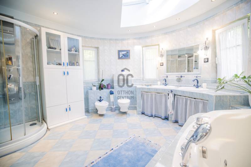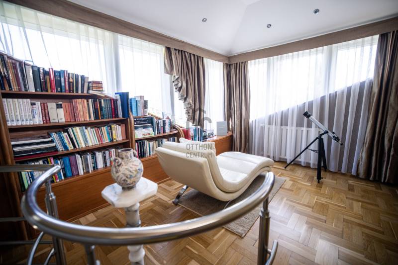 Eladásra kínálunk egy gyönyörű családi házat Budapest II. kerületében Adyligeten, lenyűgöző természeti környezetben. Az ingatlan újszerű, kifogástalan állapotban van, exkluzív berendezéssel és szép kerttel rendelkezik.Az épület minden részletében és elemében megmutatkozik az igényes és gondos tervezés, a minőségi kivitelezés és belsőépítészet. A tágas terek, az anyagok és a burkolatok, valamint a színek és a bútorok harmonikus összhangja mindazt a koncepciózus tervezést és kivitelezést tükrözi, amelyben az ingatlan megvalósult.A 609 m2-es, gondozott kertben található japán kerttel ellátott telken, 300 m2 hasznos belső tér található, amely minden olyan igényt kielégít, ami az exkluzív és igényes otthont keresőknek megfelel. A garázsszint:kétállásos garázs, több tárolóhelyiség, fürdőszoba WC-vel, háztartási helyiség, edzőterem és szauna.A földszinten: nagy, fényárban úszó nappali, carrarai márványból készített kandallóval, hatalmas étkező, amelyet egyedi fa intarziás tolóajtó választ el. A földszinten továbbá előszoba, vendég WC és nagy terasz a kért felé. Az emelet:három hálószoba, egy privát terasszal a kert felé, gardróbszoba, nagy fürdőszoba dupla mosdóval, jacuzzival és zuhanyzóval, valamint háztartási helyiség, amely két emeleten is elérhető szennyesledobóval.A második emelet: egy panorámás dolgozó- és relaxációs szoba. A pincében és a földszinten padlófűtés található, a többi helyiségben radiátorok vannak.A gépkocsibeálló és az összes külső lépcső fűthető, külön kapcsolószekrényen keresztül vezérelhető. Bejutás, elektromos garázsajtó és kapu. Az ingatlan területén az intelligens mozgásérzékelők és kamerák biztosítják a biztonságot. Öntözőrendszer és csepegtetőrendszer is rendelkezésre áll a kertben.A ház egy csendes, átmenő forgalomtól mentes utcában található, közel a német óvodához és az amerikai iskolához.Jöjjön, nézze meg velem! |