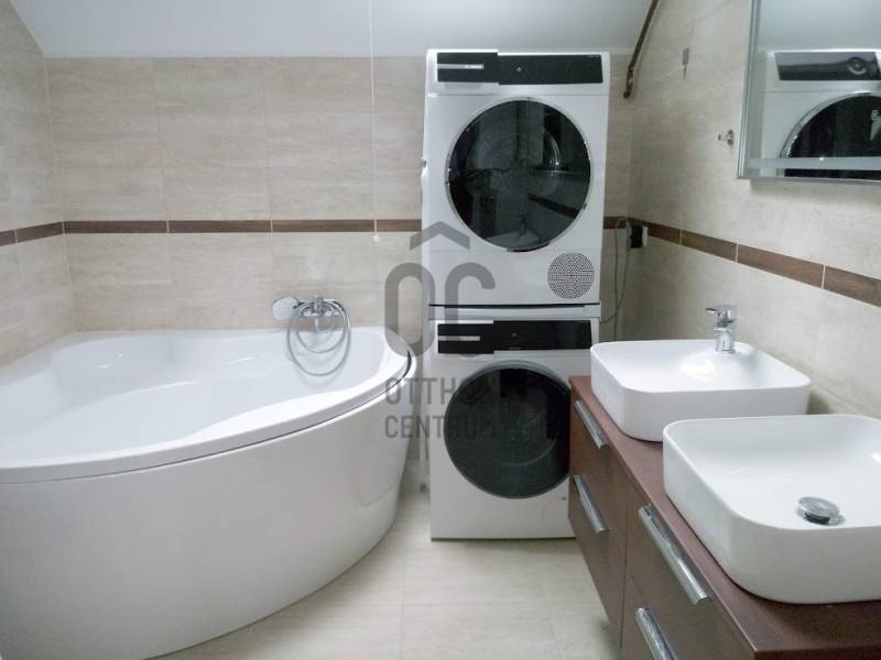 Kisállat hozható!Gyönyörű környezetben, Budafok-Rózsavölgy határán 2019-ben épült jó elosztású 127 m2-es ikerházfél a hozzátartozó 430 m2-es telekrésszel kiadó. Földszinten 48 m2-es nappali-konyha-étkező gépesített konyhabútorral, valamint dolgozószoba, kamra, zuhanyzós fürdőszoba, emeleten 3 külön nyíló szoba, káddal, zuhanyfülkével ellátott fürdőszoba található. Két hálószobákban beépített szekrény van, ezen kívül más bútor nincs az ingatlanban, Az emeleti fürdőszobában mosógép és szárító van. A kiadó lakás az alaprajzon 2.lakásként van jelölve. A bérleti díjat a bérbeadó Euro-ban határozta meg, a bérleti díjon felül a rezsi költség a bérbevevőt terheli, a közmű számlák a bérlő nevére lesz átírva. Szerződéskötéskor 1 havi bérleti díj előre történő kifizetése és 2 havi bérleti díjnak megfelelő kaució szükséges. Minimum 2 évre szóló, hosszútávú kiadás,Buszmegálló 500 méterre, közvetlen járat a Metróhoz, menetidő kb 8-10 perc.Német leírásDer übersetzte Text ins Deutsche lautet: Kleintier erlaubt!In einer wunderschönen Umgebung, an der Grenze von Budafok-Rózsavölgy, wird ein gut geschnittenes Doppelhaus mit einer Fläche von 127 m² und einem dazugehörigen Grundstück von 430 m² zur Miete angeboten. Im Erdgeschoss befindet sich ein 48 m² großes Wohn-Esszimmer mit einer ausgestatteten Einbauküche, sowie ein Arbeitszimmer, eine Speisekammer und ein Badezimmer mit Dusche. Im Obergeschoss gibt es drei separat zugängliche Schlafzimmer sowie ein Badezimmer mit Badewanne und Duschkabine. In zwei der Schlafzimmer sind Einbauschränke vorhanden, darüber hinaus sind keine weiteren Möbel im Objekt vorhanden. Im Badezimmer im Obergeschoss sind eine Waschmaschine und ein Trockner vorhanden. Die zur Vermietung stehende Wohnung ist im Grundriss als Wohnung 2 gekennzeichnet. Die Miete wurde vom Vermieter in Euro festgelegt, zusätzlich zur Miete trägt der Mieter die Nebenkosten, die Versorgungsrechnungen werden auf den Namen des Mieters umgeschrieben. Bei Vertragsabschluss sind die Vorauszahlung einer Monatsmiete sowie eine Kaution in Höhe von zwei Monatsmieten erforderlich. Es handelt sich um eine langfristige Vermietung mit einer Mindestlaufzeit von 2 Jahren. Eine Bushaltestelle befindet sich 500 Meter entfernt, mit direkter Verbindung zur U-Bahn, die Fahrzeit beträgt etwa 8-10 Minuten. Kleintier erlaubt! |