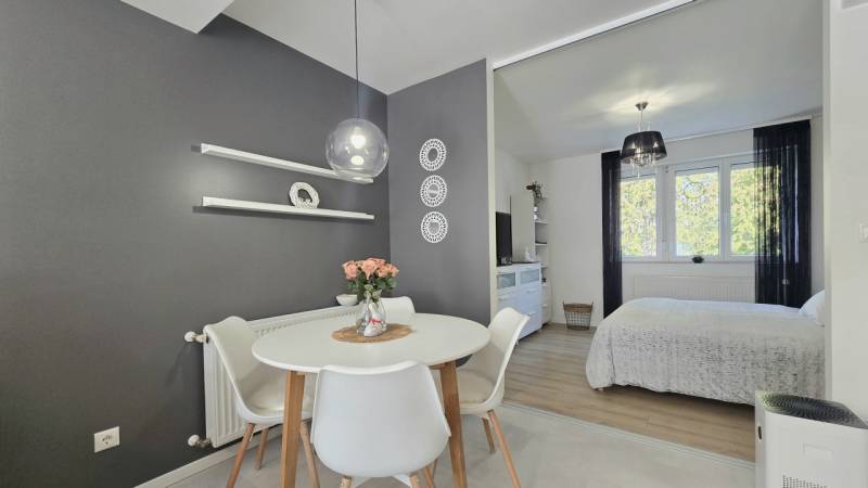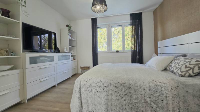 Eladóvá vált egy kiváló minőségben felújított 60 m²-es, erkélyes lakás garázzsal együtt.Zalaegerszeg két kedvelt városrészének határán, a Belváros és a Kertváros találkozásánál kínálunk megvételre egy nappali + 2 hálószobás, teljeskörűen, egyedi megoldásokkal felújított, csodaszép lakást. - Az ingatlanban megtörtént a vezetékek cseréje (víz, villany, gáz), új burkolatok és szaniterek kerültek minden helyiségben beépítésre.- A nyílászárók és a beltéri ajtók mellett a bejárati ajtó is új. Az ablakok redőnnyel, szunyoghálóval ellátottak, a nappaliban elektromos redőny van. - A konyhában modern, új, gépesített konyhabútor került beépítésre.- Fűtése egyedi gázcirkó fűtés lapradiátor hőleadókkal. Hűtése 2 klímaberendezéssel történik.- A fürdő és a wc külön található, a fürdőben nagyméretű zuhanyzó áll rendelkezésre.- Az ingatlan egy kis lakóközösségű társasház 2. emeletén található, így nemcsak világos, hanem rendkívül csendes is. - A kiváló belső szigetelésnek köszönhetően a lakás alacsony rezsiköltséggel fenntartható. - A csodaszép otthonhoz egy saját, zárható tároló és közös tároló is rendelkezésre áll a pincében.Az épület közelében megtalálható óvoda és iskola, így az ingatlan különösen praktikus családosok számára.A környéken minden fontos szolgáltatás – bevásárlási lehetőségek, gyógyszertár – valamint a kórház néhány perc sétával elérhető, emellett a buszmegálló is pár percre van.A parkolás a 16 m2-es udvari garázsban, közvetlenül a társasház mellett megoldott.A lakáshoz tartozó zárt, biztonságos garázs kötelezően megvásárolandó, melyet az ingatlan vételára nem tartalmaz, a garázs irányára 10.900.000.- Ft.A lakás iányára: 53.600.000 FtEz a lakás ideális választás lehet mindazoknak, akik egy rövid időn belül költözhető, igényesen felújított, modern otthont keresnek kiváló elhelyezkedéssel – akár saját részre, akár befektetésként. Ne maradjon le róla, további információkért hívjon bizalommal! |