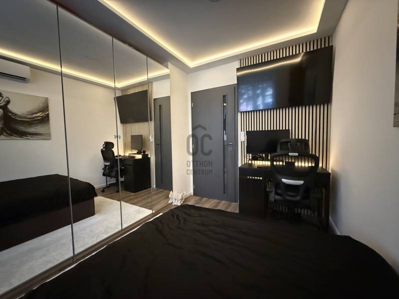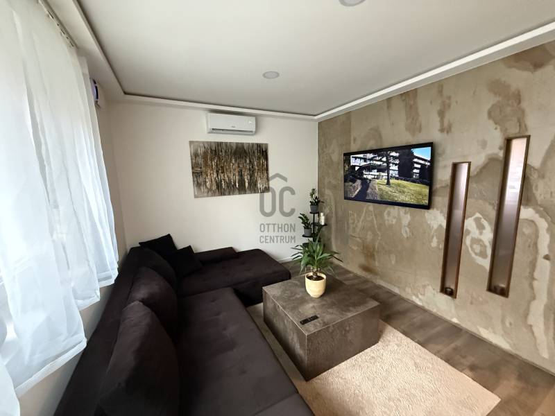 Eladó Budapest XI. kerületének egyik nyugodt, zöldövezeti részén, Albertfalván egy 42 m²-es, teljeskörűen felújított, prémium kivitelezésű földszinti lakás erkéllyel és külön tárolóval. Az ingatlan 2023-ban teljes műszaki és esztétikai felújításon esett át, modern, egyedi megjelenést kapott, jelenlegi állapotában azonnal költözhető.A lakás egy patinás, mindössze 12 lakásos társasházban található, rendezett, csendes lakóközösséggel. A ház nem zsúfolt, kifejezetten élhető, nyugodt környezetet biztosít.A lakáshoz tartozik:- 3 m²-es földszinti erkély- előkert használati lehetőség- 8 m²-es külön pinceszinti tárolóMinőség és extra megoldások:- prémium burkolatok, nagy méretű terméskő és gres porcelán- elektromos redőnyök- walk-in zuhany- rejtett hangulatvilágítás- tükrös beépített gardrób a hálóban- nagy méretű beépített szekrény az előszobában- a nem beépített bútorok megegyezés szerint maradhatnakMűszaki tartalom:- víz- és hőszigetelt padló- hangszigetelt mennyezet- H-tarifás hűtő-fűtő klíma (rendkívül alacsony fenntartás)- elektromos padlófűtés a hidegburkolatok alatt- hőcserélős szellőzőrendszer- 3 rétegű nyílászárók- teljesen elektromos üzemű lakás- gáz kikötve, de visszaállítás lehetősége adottKörnyezet és elhelyezkedés:- villamosmegálló 2 perc sétára- Príma, dohánybolt 2 perc sétára- Savoya Park 3 perc autóval- parkosított, zöld hátsó udvar- utcai, nyugati tájolásIdeális választás:- első saját otthonnak- egyedülállóknak- pároknak- egyetemistáknak- befektetésnek kiadásraFriss tisztasági festés 2026 februárjában megtörtént.Alacsony fenntartású, modern műszaki tartalommal rendelkező, átgondolt kialakítású, valóban igényes lakás kiváló lokációval.Közös költség: 12 300 Ft/hó |