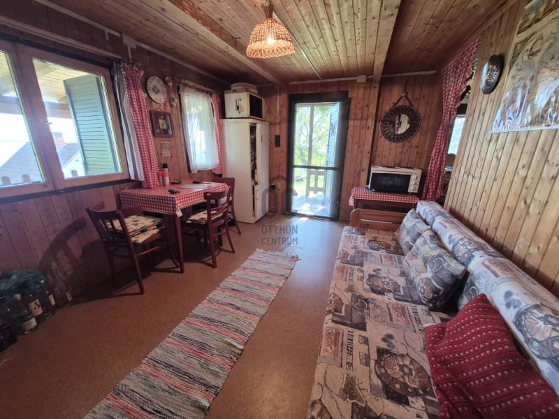 Balatonszepezd zártkerti részén, a belterülethez közel található ez a kis nyaraló és a hozzá tartozó 2158 négyzetméteres telek.A telken helyet kapott faház a \'80-as évek közepén került megépítésre, hasznos alapterülete 35 négyzetméter, melyhez 19 nm-es balatoni panorámás terasz kapcsolódik.A telek egészéről látható a Balaton, így teremtve különleges, egyedi hangulatot a helynek.A jelenlegi helyi építési szabályzat szerint az épület tovább bővíthető, de átépíthető, és felújítható is.Elosztását tekintve az alsó szinten egy nappali-étkező, egy konyha, egy fürdőszoba és egy hálószoba került kialakításra, míg a tetőtéri rész szintén hálószobaként funkcionál.A házba az áram bevezetésre került, a vezetékes víz az utcában található, jelenleg ciszterna gyűjti az esővizet, és házi vízművel jut el a fürdőszobához, és a konyhához.Csatorna erre a részre nem került bevezetésre, emésztő áll rendelkezésre a szennyvízelvezetéshez.Gyalogosan a buszmegálló, és a vasúti megállóhely is csak 10 perc, míg a szepezdfürdői strand 15 perc.Autóval pedig mindössze csak 2 percre vannak.Ajánlom az ingatlant mindazok figyelmébe, akik a nyüzsgő balatoni nyár mellett a békésebb, csendes kikapcsolódást keresik!Amennyiben kérdése merülne fel az ingatlannal kapcsolatban, illetve szeretné azt megtekinteni, kérem vegye fel velem a kapcsolatot megadott elérhetőségeim egyikén! |