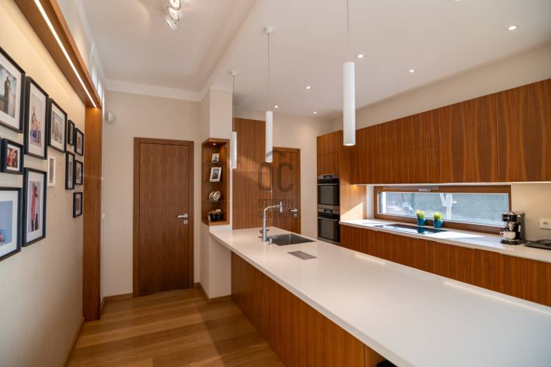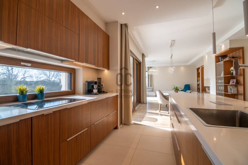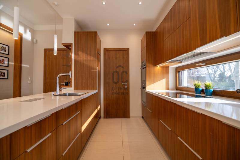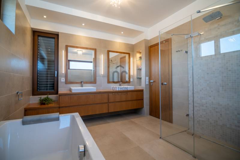 Prémium modern családi ház 2 nappalival, 7 szobával, szaunával – Madárhegy legszebb részén, örök panorámávalBudapest XI. kerületének egyik legkeresettebb, exkluzív lakóövezetében, Madárhegy csendes, rendezett utcájában kínálunk megvételre egy valóban különleges, modern minimál stílusú családi házat. Az ingatlan ritka értéke a teljes intimitás, a természet közelsége és az a nyugalom, amely hosszú távon is stabil értéket és élhető mindennapokat biztosít.Ez az otthon nemcsak méreteiben, hanem gondolkodásmódjában is prémium: két tágas nappalival, hét különálló szobával, szaunával és energiatudatos, alacsony fenntartású műszaki megoldásokkal készült – mindazzal, amire egy modern, családközpontú élethez szükség van.Főbb méretek, alapadatokTeljes lakóterület: 323 nmTerasz: 61 nmErkély: 37 nmKert: kb. 1400 nmTelek mérete: 1661 nmGarázs: 2 autó részére, zártFöldszint – a közös élmények tereA földszint szíve a nagyvonalúan megnyitott nappali–étkező–konyha egység, ahol a háromrétegű, nagyméretű üvegfelületek természetes fényt és közvetlen kapcsolatot biztosítanak a terasszal és a kerttel. Ezek a nyitott terek ideálisak a család számára: közös étkezésekhez, beszélgetésekhez, ünnepekhez vagy akár baráti összejövetelekhez.Földszint:Előtér: 9,15 nmNappali: 32 nmÉtkező: 17,6 nmKonyha: 13,7 nmWC: 3,3 nmDolgozószoba / vendégszoba: 14 nmSportszoba / spórolásra is alkalmas multifunkciós szoba: 18 nmGarázs: 37 nmA földszinti sportszoba igény szerint alakítható edzőtérnek, hobbihelyiségnek vagy akár energiatakarékos tároló- és gépészeti kiegészítő térnek, így a ház működése hosszú távon is gazdaságos marad.Emelet – privát terek és nyugalomAz emeleten kapott helyet a második nappali, amely tökéletes családi pihenőtér, gyerekeknek kialakított lounge vagy csendes esti kikapcsolódás helyszíne lehet. A szint elrendezése ideális nagycsalád számára is: minden hálószoba világos, jól bútorozható és funkcionálisan elkülönül.Közlekedő: 12,4 nmFürdőszoba: 7,7 nmSzobák: 13,5 nm | 13,6 nm | 13,5 nm | 21 nmSzülői háló: 17 nm – teraszkapcsolattal és panorámávalVendégszoba: 9,2 nmSzülői fürdő: 13,2 nmA szülői háló saját, prémium felszereltségű fürdővel és közvetlen teraszkapcsolattal rendelkezik, ahonnan zavartalan kilátás nyílik a zöld környezetre. A földszinten kialakított szauna a mindennapok részévé teszi a pihenést és a regenerálódást.A magas minőségben kialakított konyhát egyedileg gyártott, praktikus beépített bútorok, AEG háztartási gépek és indukciós főzőlap teszik teljessé, míg a bárszékek kellemes teret biztosítanak a kötetlen konyhai beszélgetésekhez. A mindennapi komfortot vízlágyító rendszer és padlófűtés biztosítja.Az enteriőr hangulatát gondosan megtervezett világítás, dizájner lámpák és igényesen kiválasztott burkolatok határozzák meg, amelyek minden részletükben az esztétikumot és a minőséget képviselik. A háztartási helyiség beépített szekrényekkel és praktikus pakolófelületekkel segíti a mosó- és szárítógép melletti házimunkát.Az ingatlan teljes bútorzattal kerül értékesítésre, mivel a berendezések jelentős része egyedileg gyártott, kifejezetten ehhez az otthonhoz tervezett darab.Környezet és elhelyezkedésMadárhegy egyik legnagyobb értéke az egységes utcakép, az alacsony beépítettség és a zöld környezet. A házat utcafronti növényfal védi, így a kert és a terasz teljes privát szférát biztosít.Rövid időn belül elérhetők:több óvoda és bölcsődekiváló állami és magániskolák, valamint nemzetközi intézmények Újbudánbevásárlási lehetőségek, sport- és kirándulóhelyekA környék presztízse folyamatosan növekszik, ami az ingatlant nemcsak szerethető otthonná, hanem biztos hosszú távú befektetéssé is teszi.Műszaki tartalom – energiatudatos prémiumDaikin 11 kW-os hőszivattyú – mennyezethűtés-fűtés és padlófűtésHelios hővisszanyerős szellőztető rendszerLoxone okosotthon rendszer – fűtés, hűtés, árnyékolás telefonról vezérelhetőSchneider ipari kategóriás elektromos elosztó9,5 kW-os napelemes rendszer 8 kW-os Huawei inverterrel.Szaldó elszámolás 2030-igÁtlagos villanyszámla: kb. 5.000 Ft/hóTeljeskörű medence-előkészítés a kertbenEz az ingatlan azoknak készült, akik nem kompromisszumot keresnek, hanem minőséget, tágas közös tereket, családi élményeket és hosszú távon fenntartható megoldásokat Budapest egyik legjobb részén.Vegye fel velem a kapcsolatot, és egyeztessünk egy személyes megtekintést – ez az otthon élőben mutatja meg igazán, miért lehet könnyű beleszeretni. |
