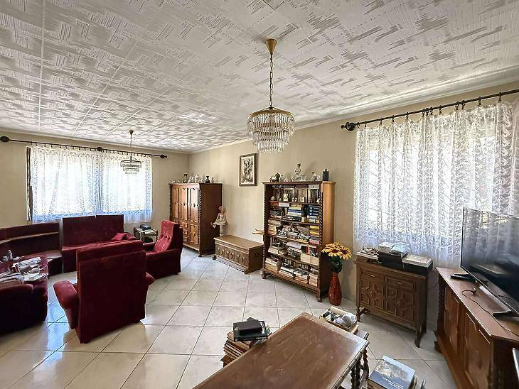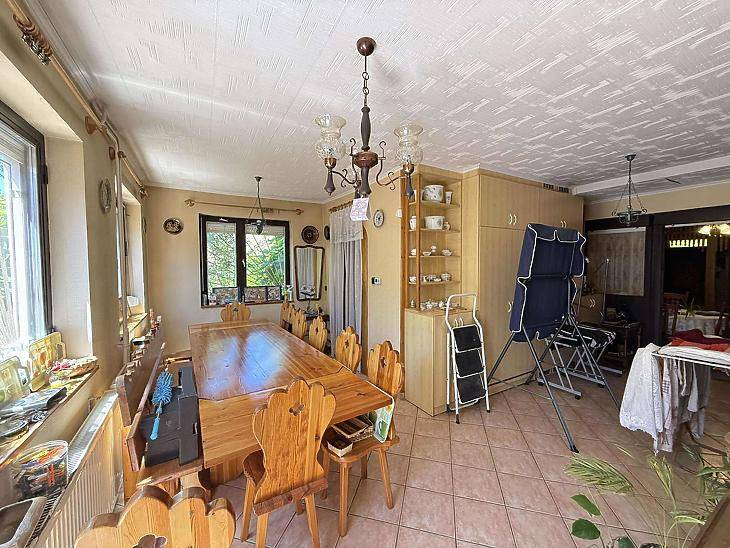 XVI. kerületben, Rákosszentmihály csendes mellékutcájában eladó egy 315 m²-es, háromszintes családi ház 547 m²-es telken. Az ingatlan nyugodt, rendezett környezetben helyezkedik el, ugyanakkor a tömegközlekedési és bevásárlási lehetőségek rövid időn belül elérhetők.A HÁZ JELLEMZŐI:A ház 1984-ben téglából épült, 1994-ben bővítésen esett át. Palatető fedi, a villanyvezetékek rézből készültek. Fűtését gázkazán biztosítja. A nyílászárók fa szerkezetűek, jó állapotúak, thermo üvegezéssel. A szobák fa parkettával burkoltak, míg a vizes helyiségek hidegburkolatot kaptak. Az ingatlan világos, tágas tereinek köszönhetően kiválóan alkalmas akár két generáció együttélésére, akár vállalkozási célra.Az épület három szinten helyezkedik el. A földszint 144 m² alapterületű, ahol előtér, nappali, két hálószoba, konyha, étkező, fürdőszoba, külön mellékhelyiség és terasz található. Az emelet 126 m²-es, itt egy előtér, hat hálószoba, valamint egy mellékhelyiséggel ellátott fürdőszoba került kialakításra. A pince szint 114 m²-es, ahol közlekedő, szauna, fürdőszoba, kamra, dolgozószoba, biliárd helyiség, tároló és garázs kapott helyet.A telken kétállásos garázs, valamint további két különálló épület található, amelyek műhelyként, raktárként vagy további garázsként is hasznosíthatók.A közelben néhány percen belül elérhető a 174-es, 244-es és a 996-os busz. Az ingatlan hitelre is megvásárolható, bankfüggetlen tanácsadóink díjmentesen segítenek megtalálni az Ön számára legkedvezőbb finanszírozási megoldást. Irányára: 149,9 millió forint.Vevőink részére a közvetítés díjtalan. A hirdetésben szereplő adatok tájékoztató jellegűek. Várjuk hívását munkanapokon 9 és 19 óra között. Amennyiben saját ingatlanát értékesítené, kérjen ingyenes értékbecslést, kifejezetten a XVI. kerületre szakosodott irodánktól. |