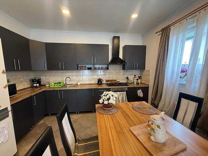 XVII. KERÜLETBEN: RÁKOSCSABÁN, CSENDES UTCÁBAN ELADÓ EGY 81 NÉGYZETMÉTERES, ÚJSZERŰ ÁLLAPOTÚ IKERHÁZFÉL, 371 NÉGYZETMÉTERES TELEKKEL ÉS KOCSIBEÁLLÓVAL.A ház 2021-ben épült Porotherm téglából, beton alappal és fa födémmel. A ház 10 cm dryvit szigeteléssel rendelkezik, a tető pedig 10 cm kőzetgyapottal szigetelt. A nyílászárók műanyagok.A fűtést és a meleg vizet kombi cirkó biztosítja, a nappaliban hűtő-fűtő klíma található.A szobák parkettásak, a többi helyiség járólappal burkolt.KIALAKÍTÁS: Amerikai konyhás nappali + étkező 10 négyzetméteres teraszkapcsolattal, 3 szoba, kádas fürdőszoba + wc, külön wc, közlekedő, előszoba.A KÖRNYÉK: Rákoscsaba csendes mellékutcájában, jó közlekedésnél. A közelben, iskola, óvoda, játszótér, orvosi rendelő, gyógyszertár, számos bevásárlási lehetőség.Az M0-ás autópálya pár perc alatt közelíthető meg. A közelben, pár perc sétával a 169 E és a 269, járatok megállója és a 956 éjszakai busz megállója található. IRÁNYÁR: 139 M FT VEVŐINK RÉSZÉRE A KÖZVETÍTÉS DÍJTALAN!A hirdetésben szereplő adatok tájékoztató jellegűek. |