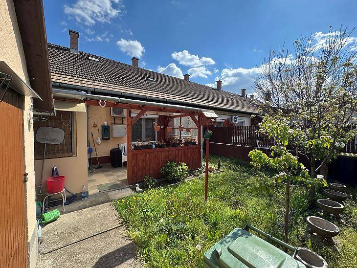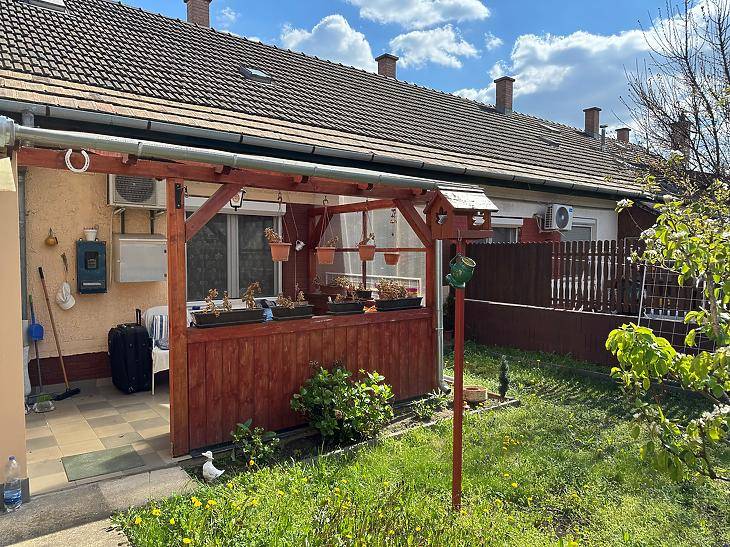 EGY SZOBÁS KERTKAPCSOLATOS LAKÁS ÚJHEGYENEladó 46nm-es, kertkapcsolatos,szigetelt társasházi lakás Budapest X. kerületében, Újhegyen.A környék rendezett, ugyanakkor kiváló közlekedéssel rendelkezik:A 28 és a 28A villamos, valamint a 95 és 195-ös buszok közvetlen összeköttetést biztosítanak az M2-es metróval. A lakás jó elosztású, tulajdonlap szerint 38nm-es, azonban egy átalakítással 2 különnyíló szobássá alakítható, ugyanis a lakáshoz hozzá lett építve egy kb.8nm-es nyári konyha, ami ki tudja váltani a jelenleg konyha-nappaliként használt helyiséget.A lakás fűtéséről konvektor, valamint hűtő-fűtő klíma gondoskodik.Esztétikailag szép állapotú, valamint réz villanyvezetékek, illetve műanyag nyílászárók kerültek beépítésre.A nagyjából 40nm-es, lekerített, rendezett kertben található egy tároló, valamint biztosítja egy saját kert minden további előnyét.Az ár irányár.Vevőink számára a közvetítés díjtalan. |