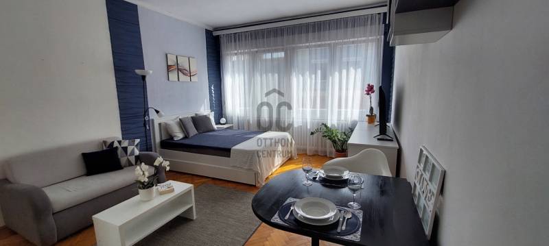 Újlipótváros kedvelt részén egy rendezett, liftes társasház magas emeletén, lépcsőházból nyíló különleges otthon várja új Bérlőjét!Tájolásának köszönhetően napfényes – télen is világos. A 31 nm-es, fiatalos hangulatú, praktikusan berendezett lakás egy tágas szobával, előszobával egy légtérben elhelyezkedő ablakos konyhával és fürdővel rendelkezik. Az ingatlan bútorozott, gépesített és teljesen felszerelt.A lakásban távfűtés van egyedi mérővel, amelynek 4150Ft/hó a díja, a melegvíz felmelegítése éjszakai árammal van megoldva. Nyáron a megfelelő hőmérsékletet klíma biztosítja.Az ingatlan minimum 1 éves határozott bérleti idővel kiadó.A bérleti díj 200.000Ft plusz a rezsi költségek/hó. A szerződéskötéskor két havi kaució és egy havi bérleti díj szükséges.Közös költség: 9.300Ft/hó.Tulajdonos kérésére nem költözhető kisállattal, gyermekkel! Dohányzás a lakásban nem megengedett!Pihenésre és szórakozásra számos lehetőséget nyújt a 10 perces séta távolságra lévő Westend City Center, a 5 percre lévő Vígszínház és a Nyugati pu., továbbá a Duna part, a Pozsonyi út kávézói - éttermei, a Szent István park, de 15 perc en belül gyalogosan elérhető a Margit sziget is.Központi elhelyezkedéséből adódóan a közlekedés Pestre és Budára egyaránt kiváló! A Nyugati pályaudvar, M3, metró, 4/6-os villamos 5-7 perc gyalogosan.További információkért és a megtekintéssel kapcsolatosan, hívjon bizalommal! |