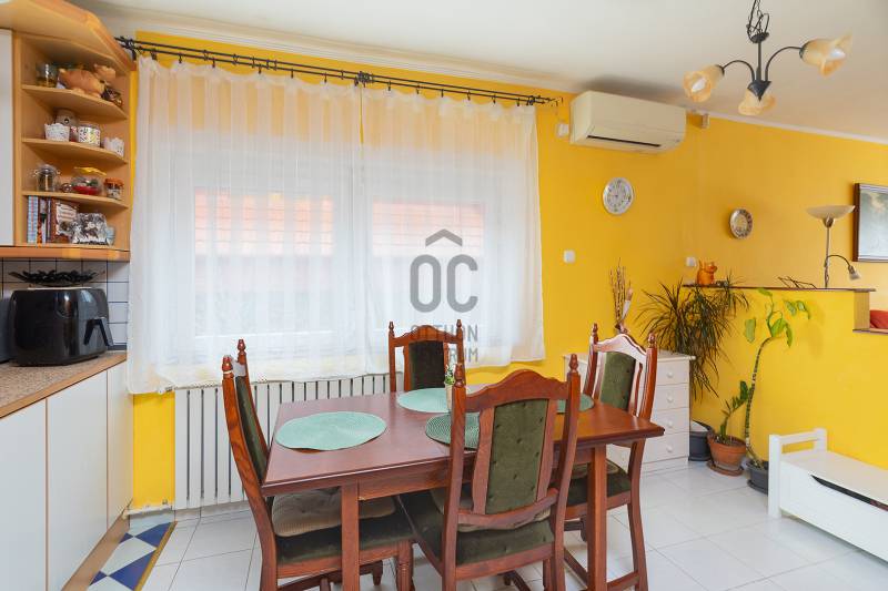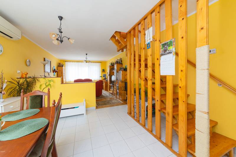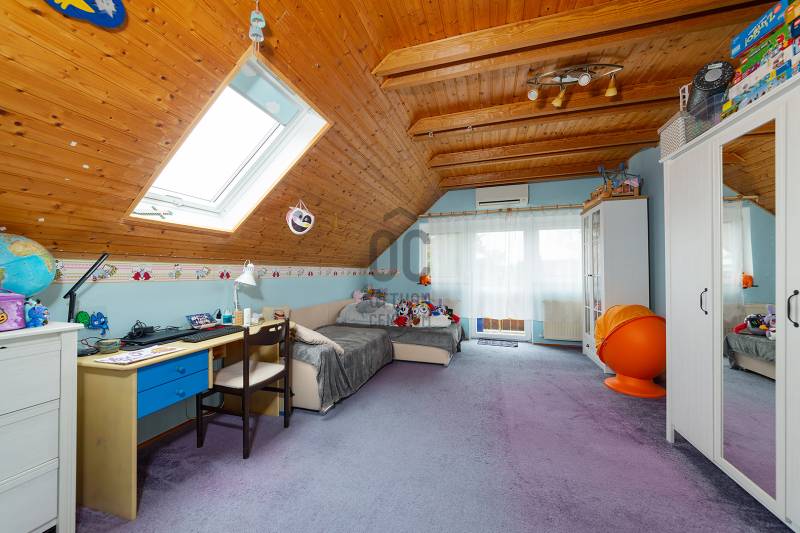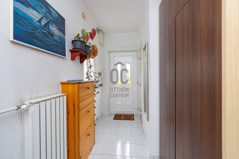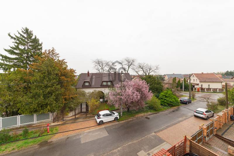 XVIII. kerületben a Gloriett telepen, csendes, családi házas környéken kínálunk megvásárlásra egy jó állapotú ikerházat 229 nm-es telekkel, dupla garázzsal. A lakóépület 1992-ben épült, klasszikus ikerház önálló, lekerített kerttel és utcai bejárattal. Az ingatlan két lakószintes, a legalsó szint a garázs, ahol két autó elfér egymás mögött és még pakolásra is marad hely, illetve ezen a szinten van egy kazánház-tároló. Az első lakószintre kényelmes lépcsőn jutunk fel a teraszra, innen nyílik a bejárat. Itt kapott helyet a tágas, világos nappali-konyha-étkező, egy előszoba és egy mellékhelyiség. Az emeleten két nagy hálószoba található, mindkét szobának saját erkélye van, továbbá egy külön mellékhelyiség és egy világos, kádas fürdőszoba. A fűtést és a használati melegvizet kombi gázcirkó adja, az ablakokat mindenhol cserélték hőszigetelt üvegezésű műanyag nyílászárókra, redőny van. Nyáron a kellemes hőmérsékletről 3 db klíma gondoskodik. Az előkert térkövezett, itt még egy autó elfér, elektromos kapun jutunk be a kertbe. Az utca rendezett, kifejezetten jó környék, buszmegálló ( 182, 183, 282E) 7 perc sétára található, iskola, óvoda, bevásárlási lehetőség van a közelben. Tehermentes ingatlan, jogi háttere rendezett.Ez az ingatlan a \"Felező csomag\" megbízási portfólióhoz tartozik. Részletek az Otthon Centrum weboldalán. |