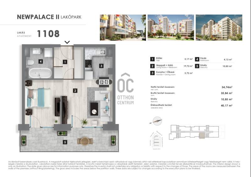 Projekt bemutatásaNew Palace II. ütemA New Palace a XIII. kerület csendes részén épül. A megújult kertvárosias környezet a pesti oldal egyik legkedveltebb részei közé tartozik, az itt élők egyszerre élvezhetik a csöndes kis utcák nyugalmát és a belváros közelségét.A társasház különleges, extravagáns homlokzatával egyedi fiatalos dizájnjával, kiemelkedik a környező épületek közül és ezáltal lesz majd sokáig a környék ismert és meghatározó tájékozódási pontja. A már eddig is komoly fejlődésen és megújuláson átesett városrész a projekt megvalósulásával beírja magát a kerület új városrészei közé.A földszint + 12 emelet magas épületet elegáns, kertépítők által tervezet parkok veszik körül, megreformálva a társasház környezetét is. A zárt, csak a társasház lakói által megközelíthető udvaron fákkal, cserjékkel tarkított, füvesített zöldkert kerül kialakításra.A lakások két elegáns, egymástól elkülönülő lobbyn keresztül közelíthetőek meg, lépcsőházanként két-két lifttel. A lakáskínálatban az egyszobás lakástól egészen a négyszobásig mindenféle elosztású megoldás megtalálható, a kínálatban alig van két egyforma lakás. Minden lakás rendelkezik erkéllyel vagy terasszal, a földszinti és néhány exkluzív emeleti lakás pedig, intenzív zöldtetővel, saját kertrésszel.Figyelembe véve a jövő elvárásait, a társasház modern, környezetbarát, mennyezeti hűtő, -fűtő rendszerrel ellátott.Vevőinknek lehetőségük nyílik arra is, hogy megvásárolt otthonukat az utolsó részletig személyre szabhassák: módosítással élhetnek otthonuk elosztása tekintetében is, továbbá széles kollekcióból választhatnak meleg- és hideg burkolatokat. Az alapáras burkolatokon felül, elérhetőek feláras termékek is, mely biztosítja, hogy személyiségük otthonukban is vissza tükröződhessen.Az infrastruktúra is magáért beszél: a közeli Váci út kiváló közlekedése és bevásárlási lehetőségei, a megújult 3-as metró Gyöngyösi utcai megállója rövid sétával elérhető, hasonlóan az idilli hangulatú Gyöngyösi sétányhoz, mely a kerület egyik legkedveltebb részei közé tartozik. Szintén pár perc sétatávolságra a folyamatosan megújuló és minden igényt kielégítő Duna Pláza bevásárlóközpont (benne: SPAR, gyógyszertár, Rossmann, DM, Médiamarkt, tisztító, fodrászatok, virágbolt, Libri könyvesbolt, papír-írószerbolt és számos ruházati bolt. Kényelmesen megoldható a napi fogyasztási cikkek beszerzése is a nap bármely órájában a közvetlen közelben lévő Tesco áruházban és az üzletsoron lévő boltokban. A lakópark tágabb vonzáskörzetében de még mindig elérhető távolságban találjuk Újpest-központot, a Népszigetet és az Újpest vasútállomást.Irodánkban a legtöbb XIII. kerületi beruházás lakásai elérhetőek ügyfeleink számára.A jelen adatok tájékoztató jellegűek, ezért a Beruházó (sem a hirdető) azok változásával, vagy bármely attól való eltéréssel kapcsolatban semmilyen kötelezettséget, vagy felelősséget nem vállal.Az alaprajzokon ábrázolt berendezési tárgyak és bútorok, a burkolatok megjelenése nem képezi a szerződés tárgyát. A pontos felszereltségről a műszaki leírásban olvashat bővebben.Az aktuális lakáskínálatról és árakról érdeklődjön telefonon! |