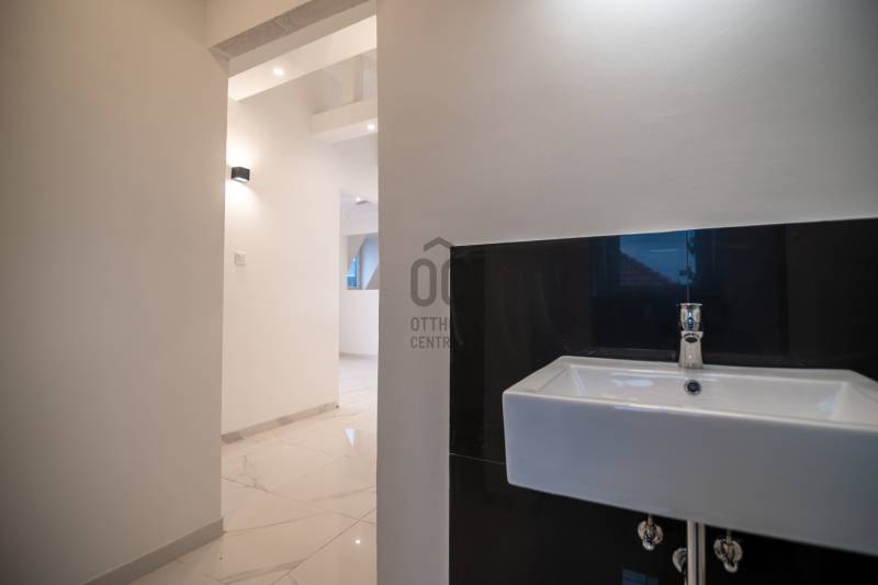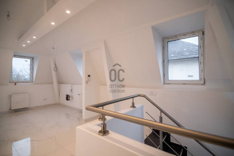 Ez a 4 szintes, átgondoltan kialakított épület többfunkciós ideális lehetőségként szolgálhat irodának, székhelynek, bemutatóteremnek, egészségügyi intézménynek vagy akár több lakásos lakóháznak is. Rendelkezik bármely funkciókombinációjával vagy azok közötti váltással is.Elhelyezkedés:Szépen decentralizált, csendes utcában, Kelenföld és Szentimre városrészek határán, mindössze pár percre a központtól. A környék kedvelt, zöldövezeti, exkluzív és könnyen megközelíthető.Az ingatlan története és felújítása:Az épület 2010-ben épült, majd a vásárlás után teljes körű felújáson esett át, beleértve a tetőtér kialakítást is. 3 év alatt, 2023–2025 között, a legmodernebb technológiai és esztétikai fejlesztésekkel modernizálták:15 cm grafitos szigetelés, új homlokzat28 db billenő és nyitható ablak, korszerű háromrétegű üvegezésselÚj alumínium és műanyag nyílászárókTeljes tető és tetőszerkezet felújítása, Lindab lapos tető, új elektromos és vízvezeték rendszerMinőségi szaniterek, hangszigetelt falak, korszerű biztonsági rendszer (riasztó és 16 kamerás CCTV)Két mélygarázs, az udvaron további 3-4 autó parkolási lehetőségTerületei:320 m² fűtött alapterület (plusz a lépcsőház)4 panorámás terasz és erkély a dél-nyugat feléKerti kiülő, grill és játszótér kialakítására lehetőségVilágos, körben napozott terek, köszönhetően nagy ablakfelületeknekFelhasználási lehetőségek:Jelenleg igényes fogorvosi rendelő és fogtechnikai labor működik az alsó szintekenIrodák, tárgyalók, közösségi terek a felső szintekenSzobák, mellékhelyiségek, fürdőszobák összesen: 9 szoba, 3 felszoba, 6 WC, 2 fürdőKiválóan alkalmas akár több lakásos társasháznak is, vagy teljeskörű irodaházként, székhellyéExtra lehetőségek:Van terv és ártervek lift kialakítására, melyben szívesen segítünkA szintek külön álló üvegportálos rendszerrel zárhatók, így akár külön bejárattal is használhatóakPanorámás kilátás:A legfelső szintről 360 fokos panoráma Sashegyre, Citadellára és a városra.Befektetés vagy saját célra tökéletes:Az épület 2024-ben megújult külsővel és tetővel tükrözi a modernitást, kiváló értéknövekedési lehetőségként szolgál befektetésként is!Ez az ingatlan a \"Hűség csomag\" megbízási portfólióhoz tartozik. Részletek az Otthon Centrum weboldalán. |