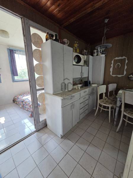 Kiváló lehetőség mindazok számára, akik saját igényeik szerint alakítanák ki álmaik pihenőhelyét egy csendes, zöldövezeti környezetben. Az ingatlan egy vadregényes, intim hangulatú telken helyezkedik el, ahol a természet közelsége és a nyugalom garantált.Az 591 négyzetméteres, körbekerített telken egy vegyes szerkezetű épület található, melynek nagyobb része stabil fa felépítmény, ezt egészíti ki egy tégla építésű rész.Az ingatlan felújítandó állapotú, ami remek lehetőséget biztosít arra, hogy új tulajdonosa saját elképzelései szerint alakítsa.A házhoz tartozó tágas, 20 négyzetméteres teraszról és a telek bizonyos pontjairól részpanoráma nyílik a Balatonra, ami különleges atmoszférát kölcsönöz az ingatlannak. A környék jól megközelíthető, mégis nyugodt, ideális hétvégi kikapcsolódásra vagy akár hosszabb tartózkodásra is.A házban a következő helyiségek találhatók: Közlekedő, gardrób, konyha-étkező, 2 szoba és fürdőszoba. A terasz alatt pedig egy nyitott tároló is helyet kapott.Az épület közművesített, víz, villany és csatorna is bekötésre került.Télen-nyáron könnyedén elérhető és a helyi strand, valamint a központi rész is 15 perces könnyed sétatávra található.Ha egy igazán különleges hangulatú nyaralót keres, amelyet saját ízlésére formálhat, ezt az ingatlant mindenképp érdemes megtekinteni!Az adatok kizárólag a megbízóink által rendelkezésünkre bocsátott információkon alapulnak.Fentiekre tekintettel, az adatok teljességéért, helyességéért és aktualitásáért nem vállalunk felelősséget.Az árváltozás, adatmódosítás és közbeni értékesítés jogát fenntartjuk, mindezekért jogi felelősséget nem áll módunkban vállalni. |