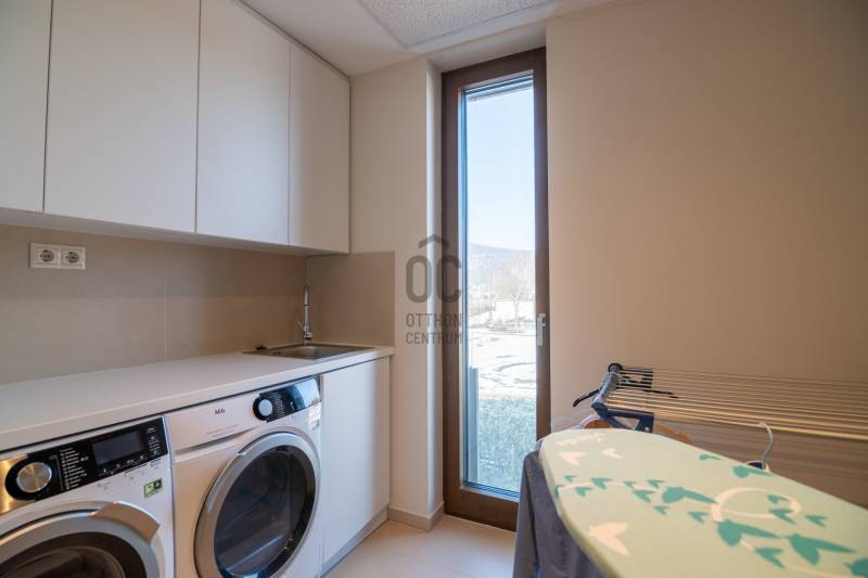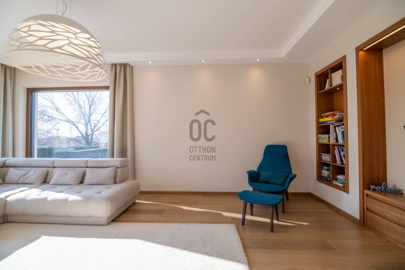 Prémium modern családi ház 2 nappalival, 7 szobával, szaunával – Madárhegy legszebb részén, örök panorámávalBudapest XI. kerületének egyik legkeresettebb, exkluzív lakóövezetében, Madárhegy csendes, rendezett utcájában kínálunk megvételre egy valóban különleges, modern minimál stílusú családi házat. Az ingatlan ritka értéke a teljes intimitás, a természet közelsége és az a nyugalom, amely hosszú távon is stabil értéket és élhető mindennapokat biztosít.Ez az otthon nemcsak méreteiben, hanem gondolkodásmódjában is prémium: két tágas nappalival, hét különálló szobával, szaunával és energiatudatos, alacsony fenntartású műszaki megoldásokkal készült – mindazzal, amire egy modern, családközpontú élethez szükség van.Főbb méretek, alapadatokTeljes lakóterület: 323 nmTerasz: 61 nmErkély: 37 nmKert: kb. 1400 nmTelek mérete: 1661 nmGarázs: 2 autó részére, zártFöldszint – a közös élmények tereA földszint szíve a nagyvonalúan megnyitott nappali–étkező–konyha egység, ahol a háromrétegű, nagyméretű üvegfelületek természetes fényt és közvetlen kapcsolatot biztosítanak a terasszal és a kerttel. Ezek a nyitott terek ideálisak a család számára: közös étkezésekhez, beszélgetésekhez, ünnepekhez vagy akár baráti összejövetelekhez.Földszint:Előtér: 9,15 nmNappali: 32 nmÉtkező: 17,6 nmKonyha: 13,7 nmWC: 3,3 nmDolgozószoba / vendégszoba: 14 nmSportszoba / spórolásra is alkalmas multifunkciós szoba: 18 nmGarázs: 37 nmA földszinti sportszoba igény szerint alakítható edzőtérnek, hobbihelyiségnek vagy akár energiatakarékos tároló- és gépészeti kiegészítő térnek, így a ház működése hosszú távon is gazdaságos marad.Emelet – privát terek és nyugalomAz emeleten kapott helyet a második nappali, amely tökéletes családi pihenőtér, gyerekeknek kialakított lounge vagy csendes esti kikapcsolódás helyszíne lehet. A szint elrendezése ideális nagycsalád számára is: minden hálószoba világos, jól bútorozható és funkcionálisan elkülönül.Közlekedő: 12,4 nmFürdőszoba: 7,7 nmSzobák: 13,5 nm | 13,6 nm | 13,5 nm | 21 nmSzülői háló: 17 nm – teraszkapcsolattal és panorámávalVendégszoba: 9,2 nmSzülői fürdő: 13,2 nmA szülői háló saját, prémium felszereltségű fürdővel és közvetlen teraszkapcsolattal rendelkezik, ahonnan zavartalan kilátás nyílik a zöld környezetre. A földszinten kialakított szauna a mindennapok részévé teszi a pihenést és a regenerálódást.A magas minőségben kialakított konyhát egyedileg gyártott, praktikus beépített bútorok, AEG háztartási gépek és indukciós főzőlap teszik teljessé, míg a bárszékek kellemes teret biztosítanak a kötetlen konyhai beszélgetésekhez. A mindennapi komfortot vízlágyító rendszer és padlófűtés biztosítja.Az enteriőr hangulatát gondosan megtervezett világítás, dizájner lámpák és igényesen kiválasztott burkolatok határozzák meg, amelyek minden részletükben az esztétikumot és a minőséget képviselik. A háztartási helyiség beépített szekrényekkel és praktikus pakolófelületekkel segíti a mosó- és szárítógép melletti házimunkát.Az ingatlan teljes bútorzattal kerül értékesítésre, mivel a berendezések jelentős része egyedileg gyártott, kifejezetten ehhez az otthonhoz tervezett darab.Környezet és elhelyezkedésMadárhegy egyik legnagyobb értéke az egységes utcakép, az alacsony beépítettség és a zöld környezet. A házat utcafronti növényfal védi, így a kert és a terasz teljes privát szférát biztosít.Rövid időn belül elérhetők:több óvoda és bölcsődekiváló állami és magániskolák, valamint nemzetközi intézmények Újbudánbevásárlási lehetőségek, sport- és kirándulóhelyekA környék presztízse folyamatosan növekszik, ami az ingatlant nemcsak szerethető otthonná, hanem biztos hosszú távú befektetéssé is teszi.Műszaki tartalom – energiatudatos prémiumDaikin 11 kW-os hőszivattyú – mennyezethűtés-fűtés és padlófűtésHelios hővisszanyerős szellőztető rendszerLoxone okosotthon rendszer – fűtés, hűtés, árnyékolás telefonról vezérelhetőSchneider ipari kategóriás elektromos elosztó9,5 kW-os napelemes rendszer 8 kW-os Huawei inverterrel.Szaldó elszámolás 2030-igÁtlagos villanyszámla: kb. 5.000 Ft/hóTeljeskörű medence-előkészítés a kertbenEz az ingatlan azoknak készült, akik nem kompromisszumot keresnek, hanem minőséget, tágas közös tereket, családi élményeket és hosszú távon fenntartható megoldásokat Budapest egyik legjobb részén.Vegye fel velem a kapcsolatot, és egyeztessünk egy személyes megtekintést – ez az otthon élőben mutatja meg igazán, miért lehet könnyű beleszeretni. |