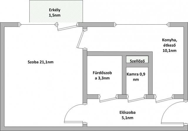 Az előszobában beépített szekrény van, itt több ember ruhája is kényelmesen elfér. A lakás ablakaiból egy fákkal tarkított utcára láthat ki, nem a szomszéd házfalára. A környék a legkevésbbé sem hasonlít a mai újépítésű betondzsungel lakóparkokra.