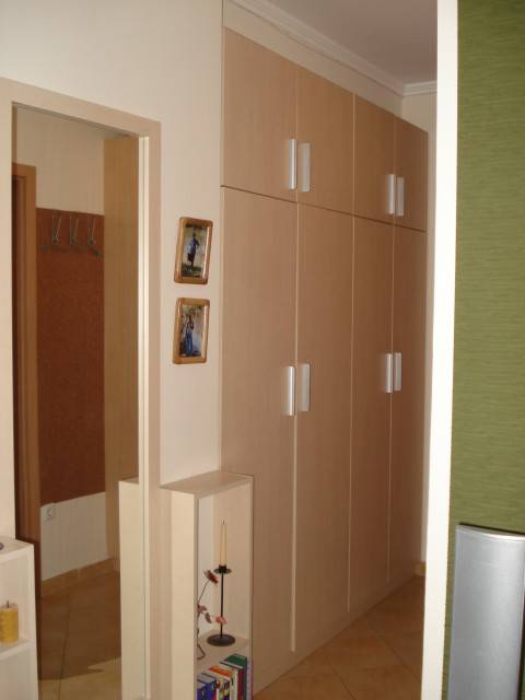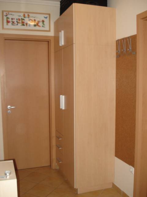 - beépített gardrób (5 nm) szintén lakkozott nyír furnér szekrényekkel,