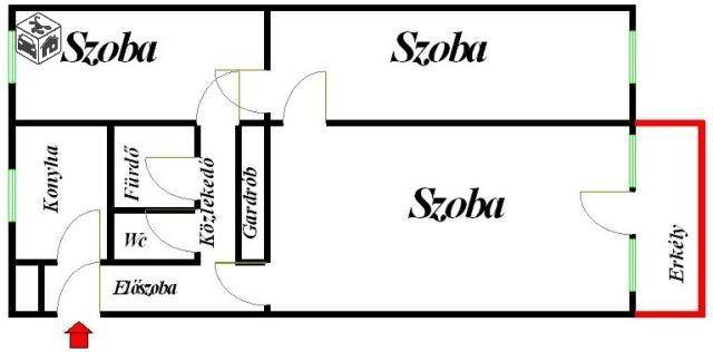| kaputelefon, beépített konyhabútor, telefon, beépített szekrény, gardrób, vízórás, internet, kábeltévé, lift, erkély, összközműves |
